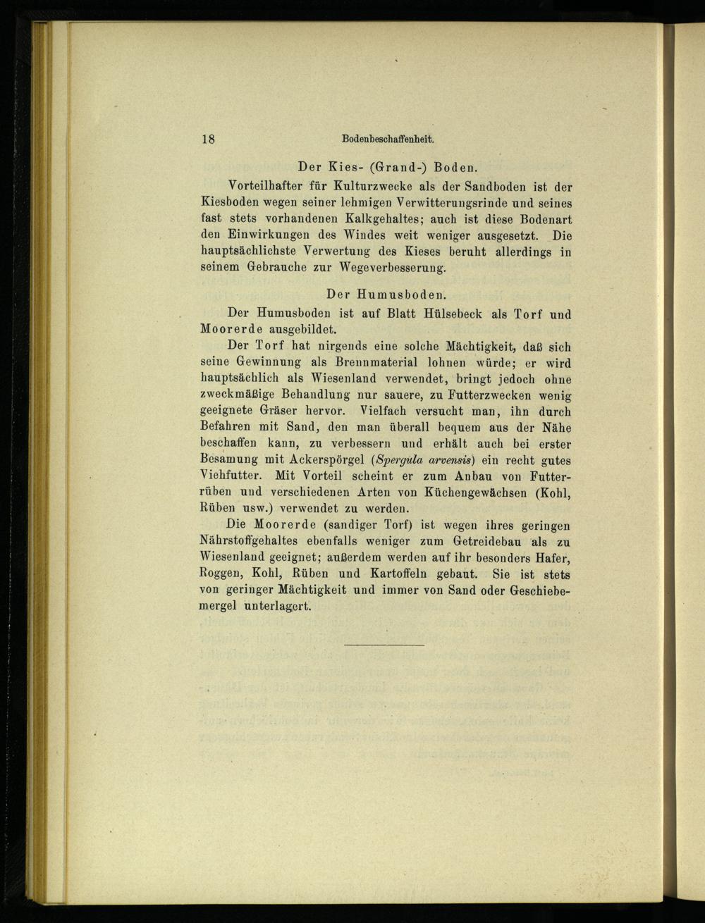Der Humusboden ist auf Blatt Hülsebeck als Torf und Moorerde ausgebildet.