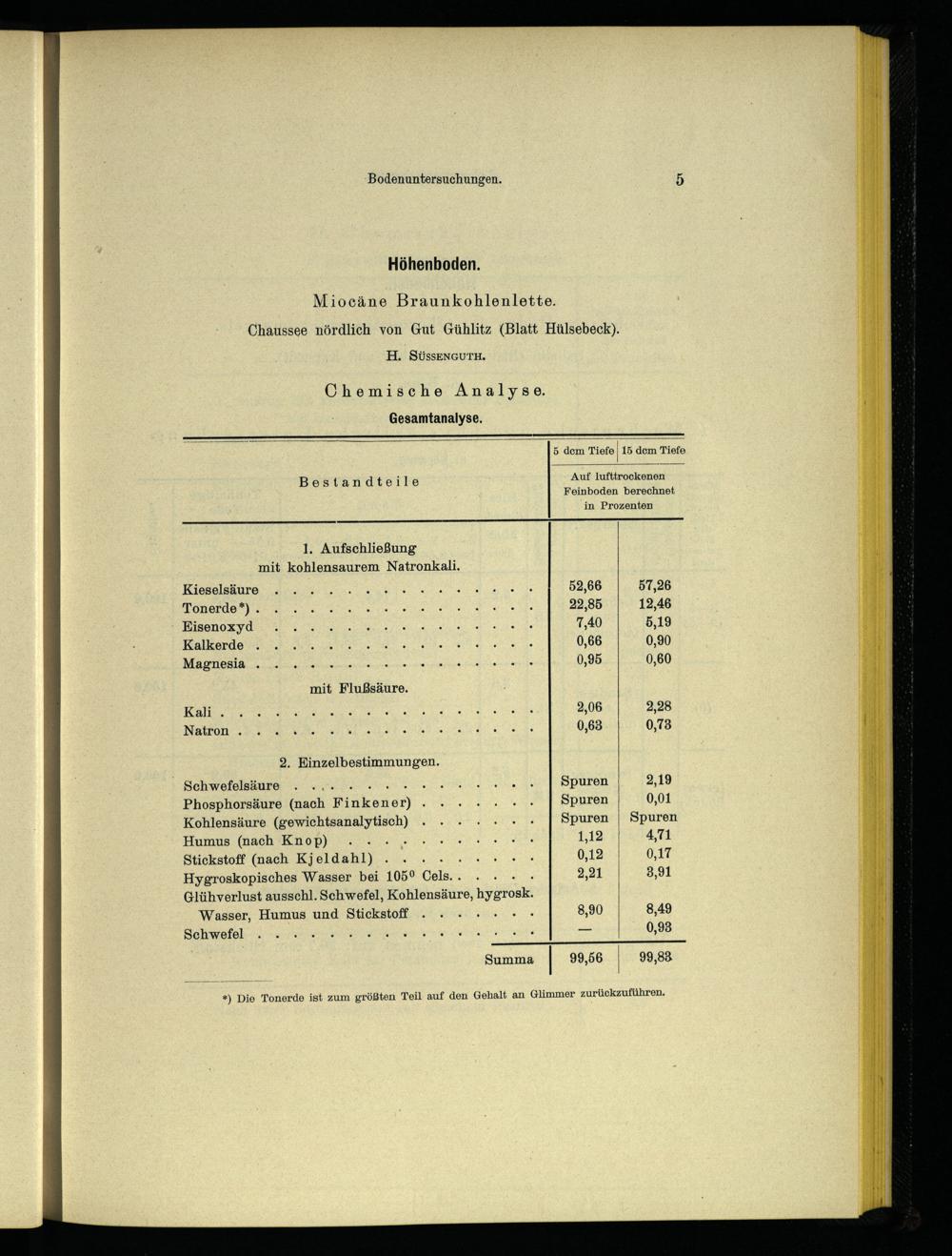 *) Die Tonerde ist zum größten Teil auf den Gehalt an Glimmer zurückzuführen,