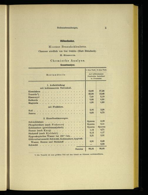 — Schwefelsäure.... VA Sa Spuren| 2,19 Phosphorsäure(nach Tinken en. Ve N Spuren 0,01 Kohlensäure(gewichtsanalytisch)....+.+ Spuren| Spuren Humus(nach Knop);. 0 2 44+ 7 1,12 4,71 Stickstoff(nach Kjeldahl)... KA 0,12 0,17 Hygroskopisches Wasser bei 105° Cela.. Kati 2,21 3,91 Glühverlust ausschl. Schwefel, Kohlensäure, hyaroak: