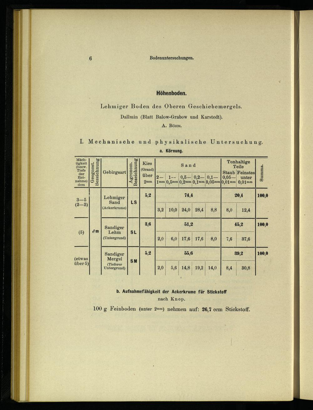 b. Aufnahmefähigkeit der Ackerkrume für Stickstoff nach Knop.