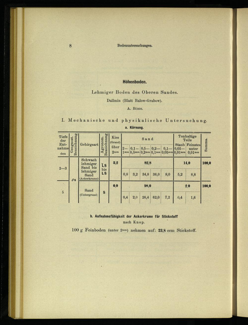 b. Aufnahmefähigkeit der Ackerkrume für Stickstoff nach Knop.|