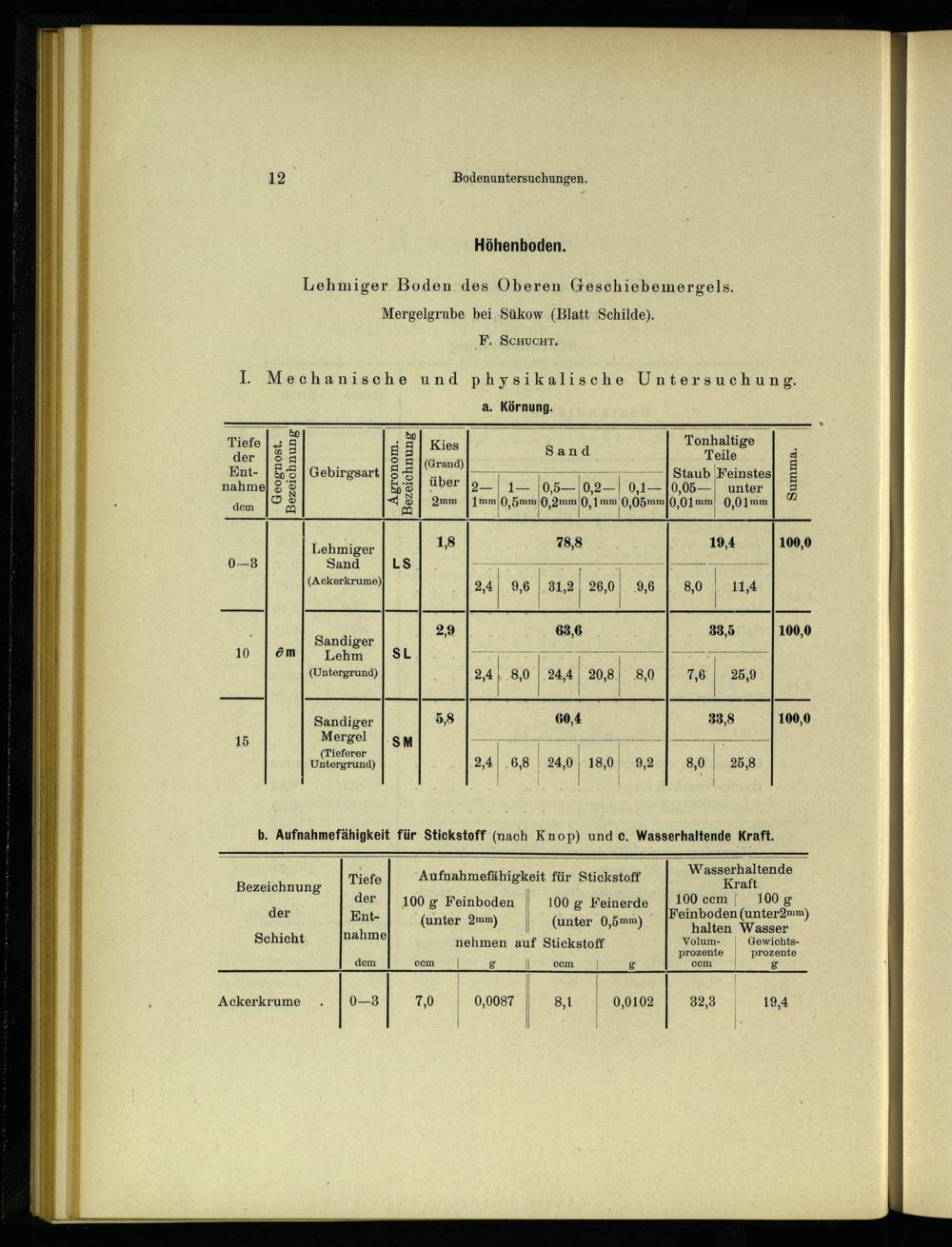b. Aufnahmefähigkeit für Stickstoff(nach Knop) und c, Wasserhaltende Kraft,