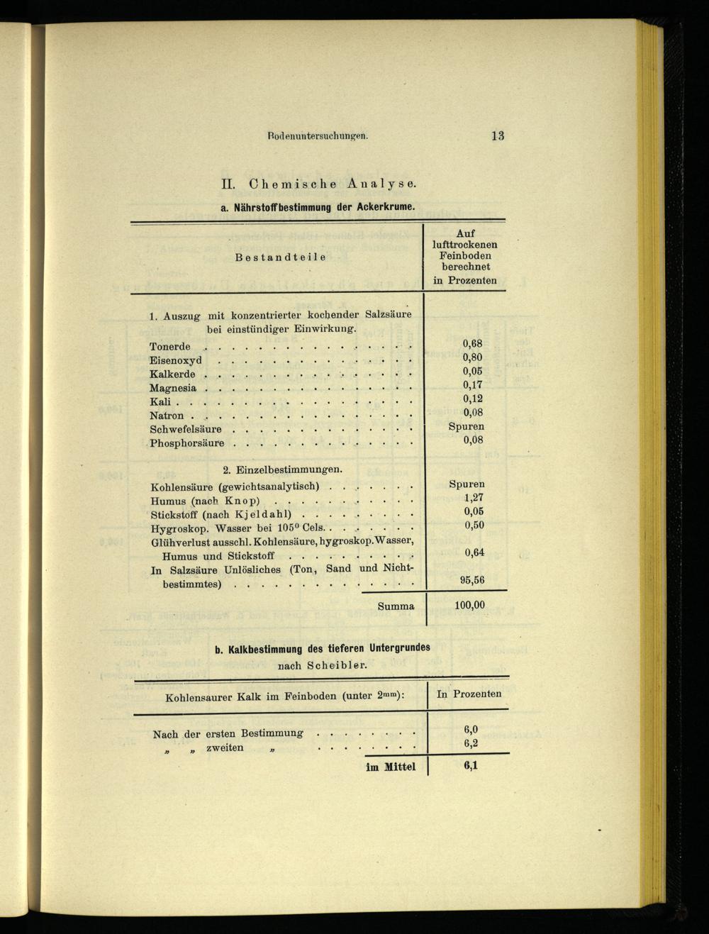 Humus und Stickstoff... 0,64 In Salzsäure Unlösliches(Ton, Sand aha Nicht