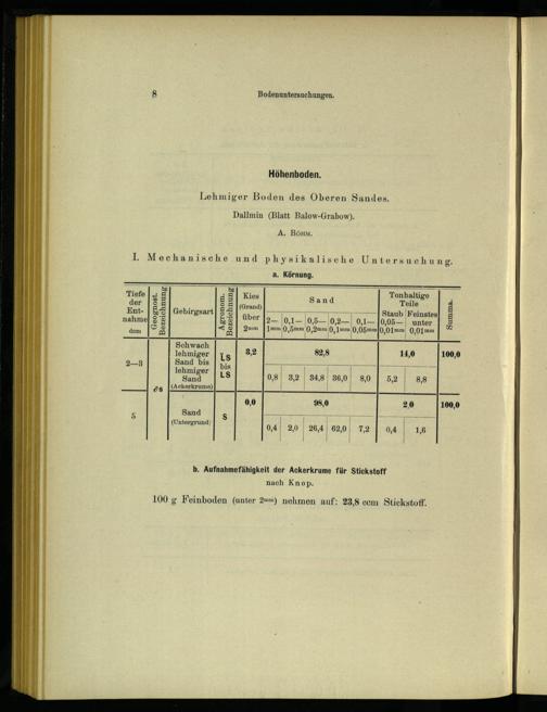 b. Aufnahmefähigkeit der Ackerkrume für Stickstoff nach Knop.