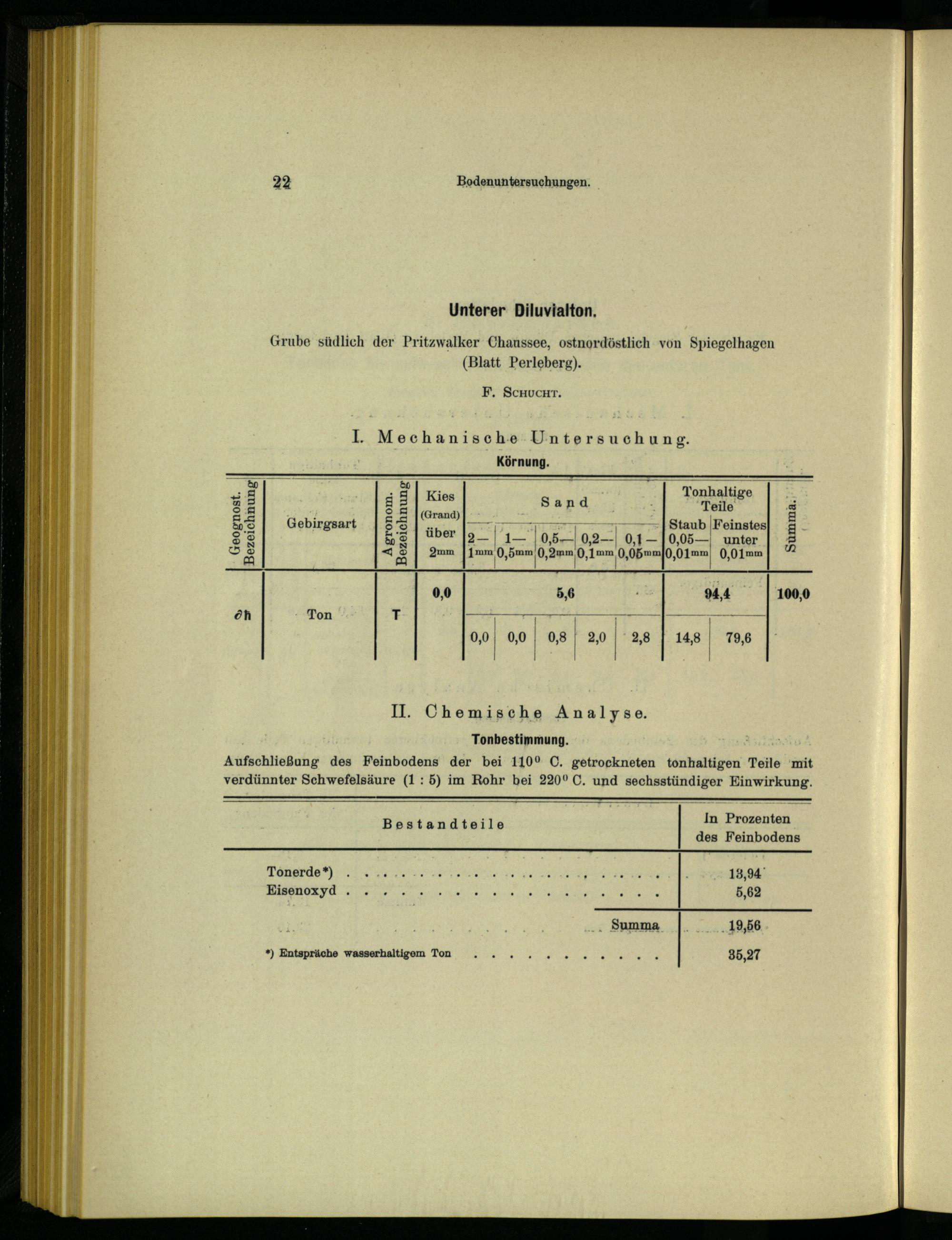 Aufschließung des Feinbodens der bei 110° C, getrockneten tonhaltigen Teile mit verdünnter Schwefelsäure(1: 5) im Rohr bei 220° C, und sechsstündiger Einwirkung.