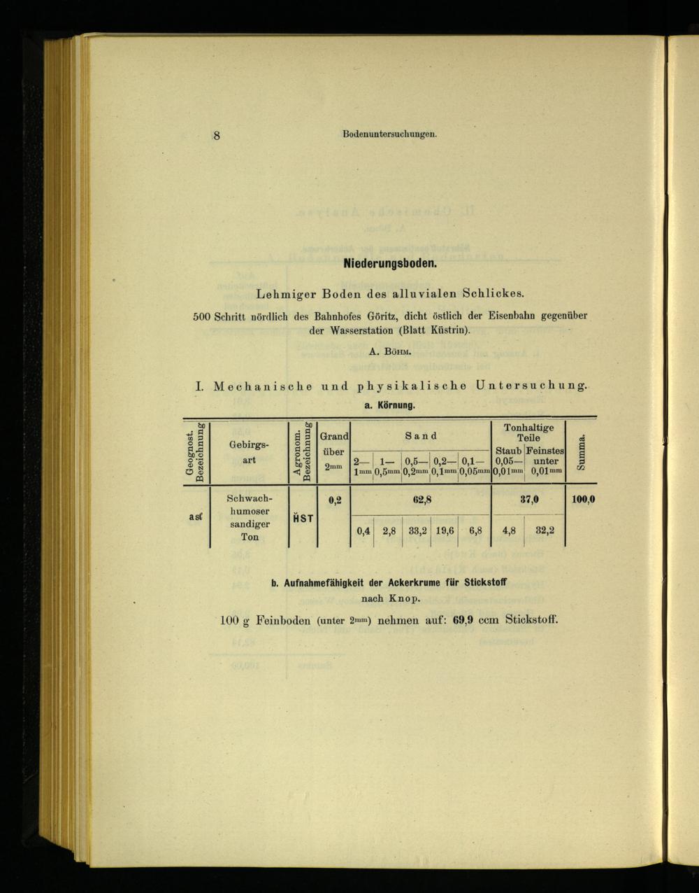 100 g Feinboden(unter 2mm) nehmen auf: 69,9 ccm Stickstoff.