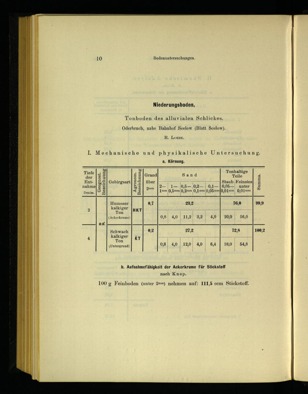 b. Aufnahmefähigkeit der Ackerkrume für Stickstoff nach Knop.