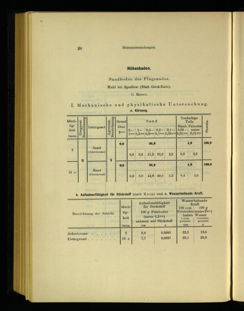 b. Aufnahmefähigkeit für Stickstoff(nach Knop) und ce. Wasserhaltende Kraft.