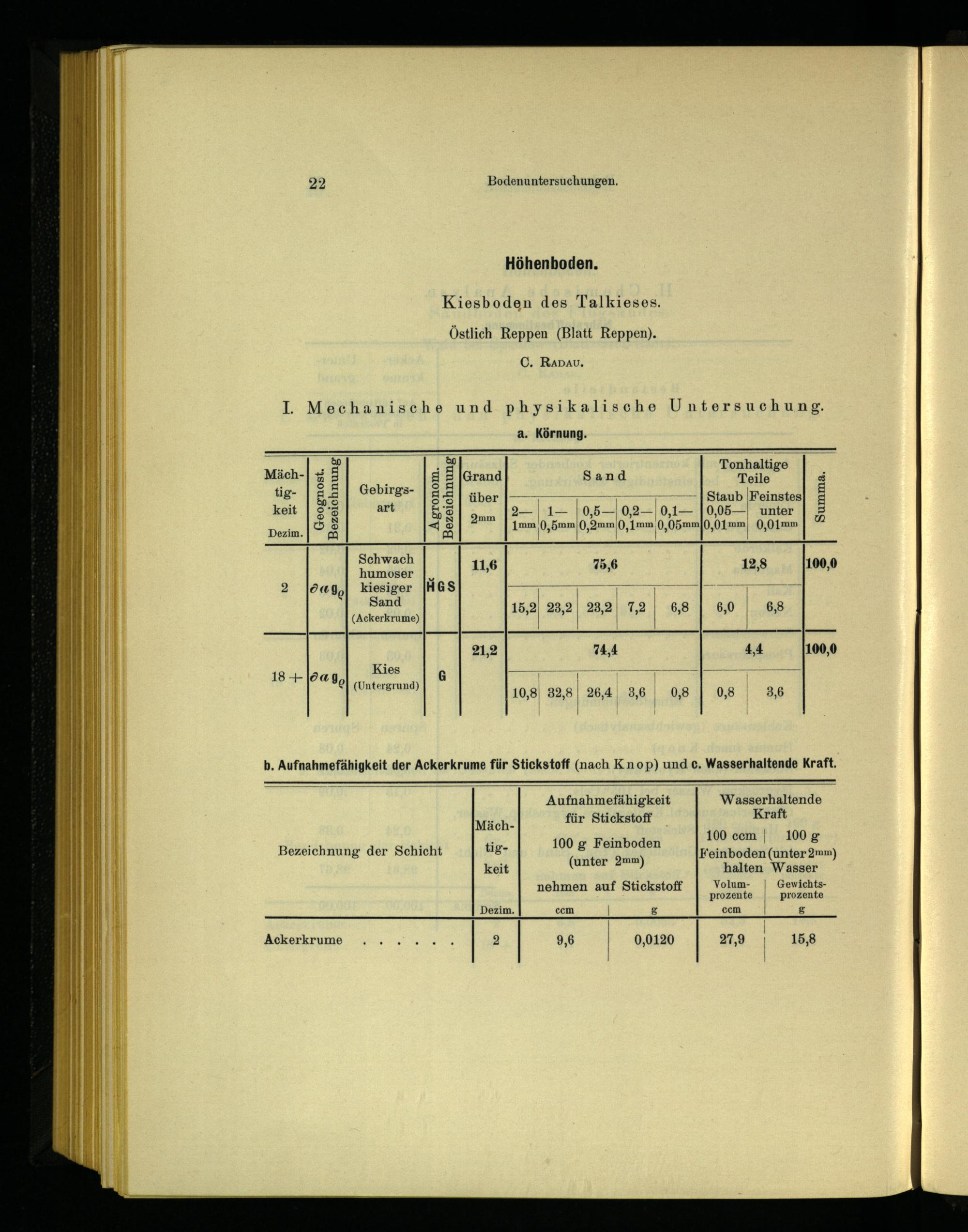 b. Aufnahmefähigkeit der Ackerkrume für Stickstoff(nach Knop) und c. Wasserhaltende Kraft.