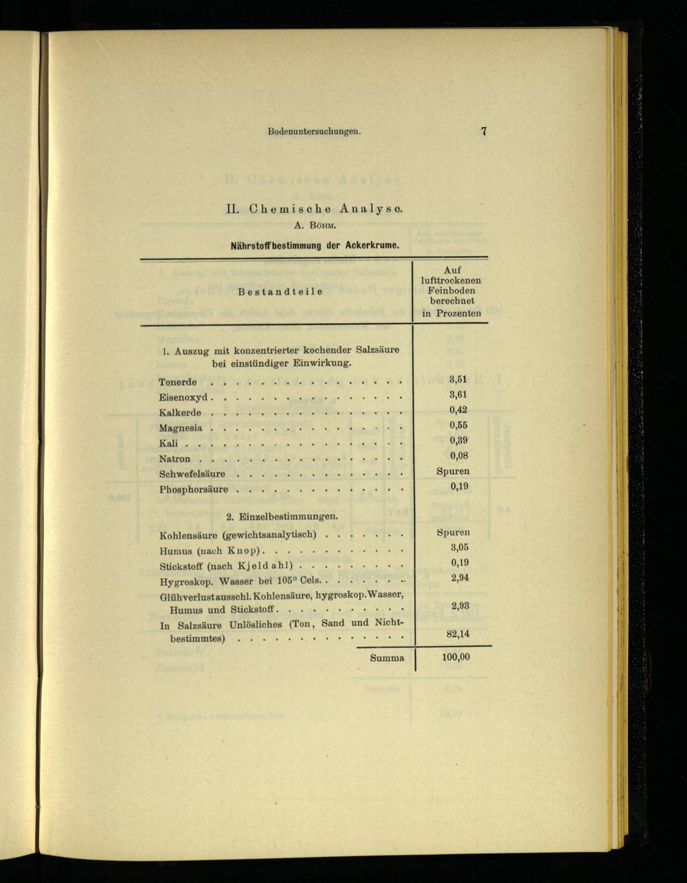 Glühverlustausschl. Kohlensäure, hygroskop. Wasser, Humus und Stickstoff.... 0++ 2 4!