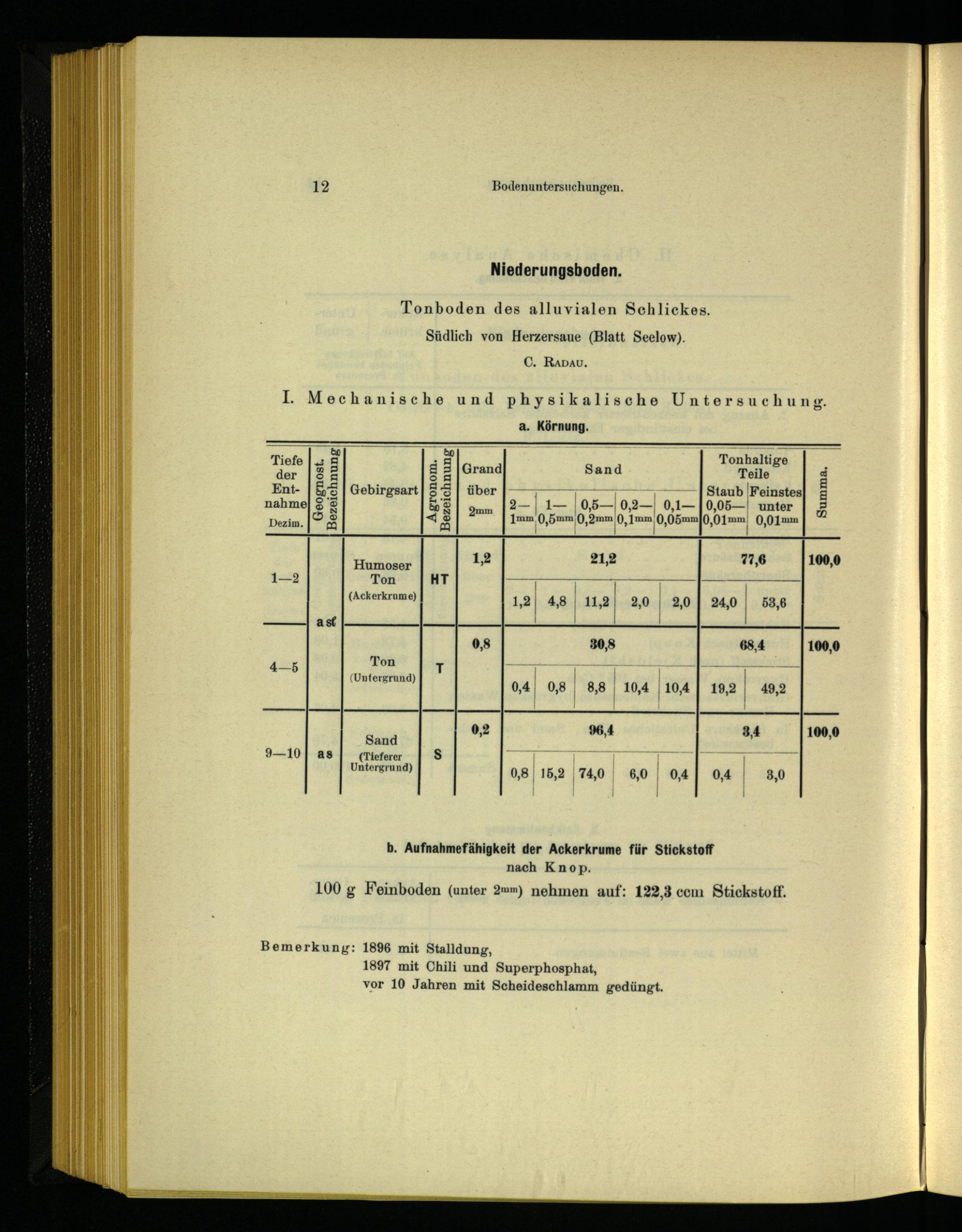 Bemerkung: 1896 mit Stalldung, 1897 mit Chili und Superphosphat, vor 10 Jahren mit Scheideschlamm gedüngt.