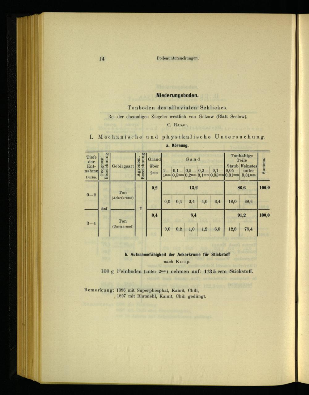 100 g Feinboden(unter 2mm) nehmen auf: 113.5 ccm Stickstoff,