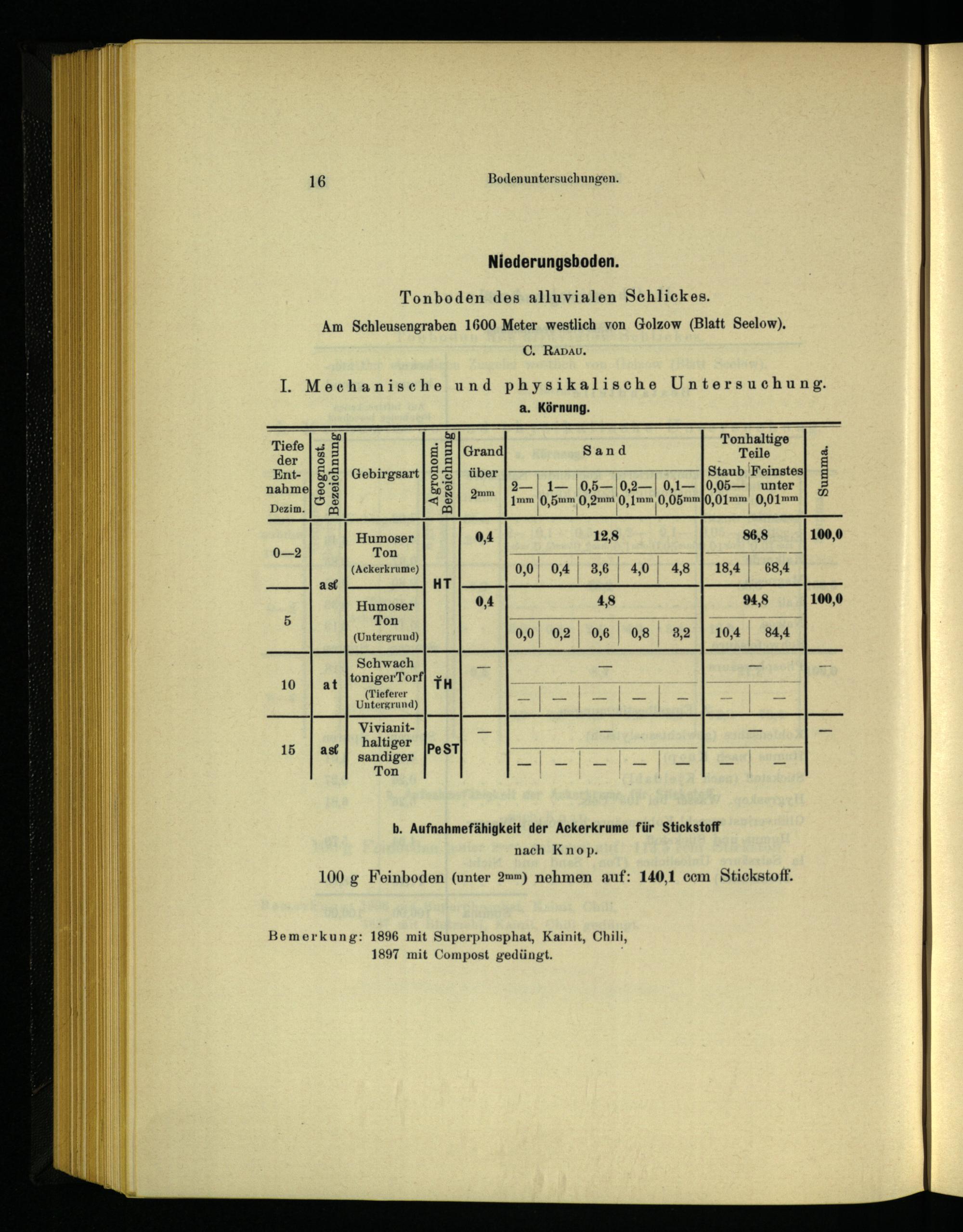 100 g Feinboden(unter 2mm) nehmen auf: 140,1 ccm Stickstoff.