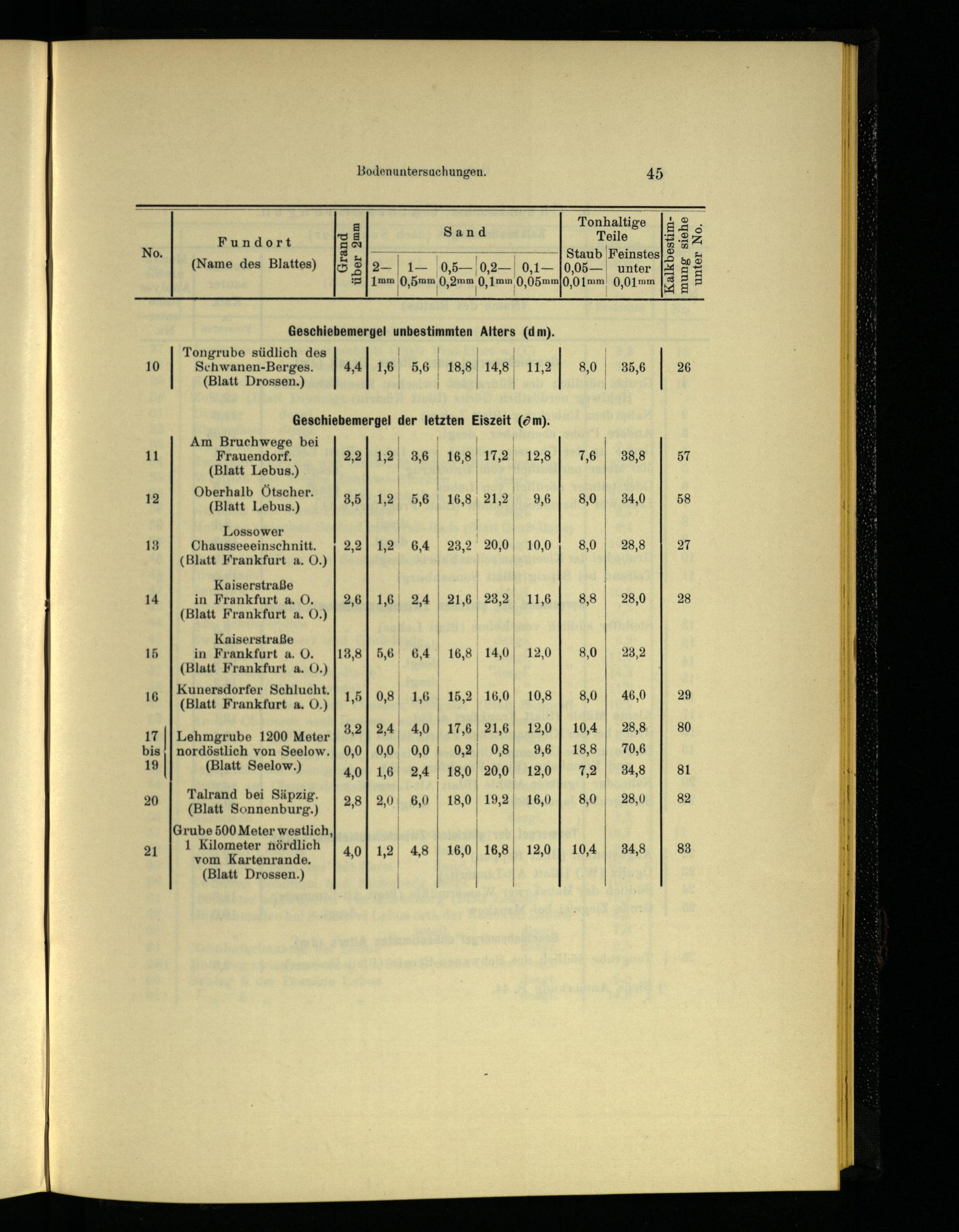 Tongrube südlich des 10 Schwanen-Berges. 4,41 1,6! 5,6! 18,8| 14,8| 11,2 (Blatt Drossen .)