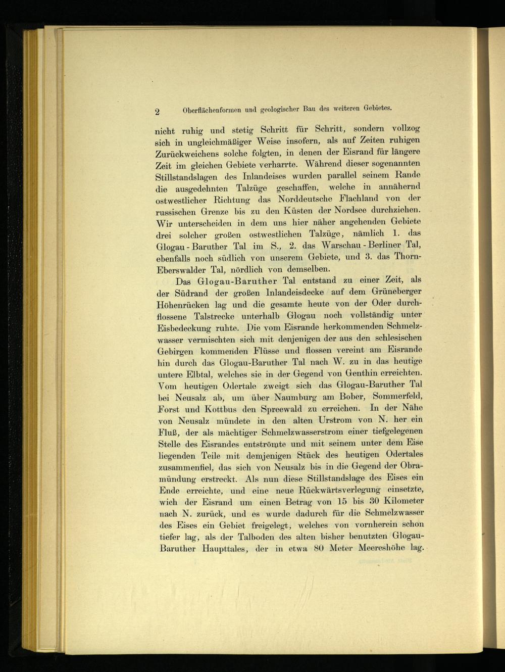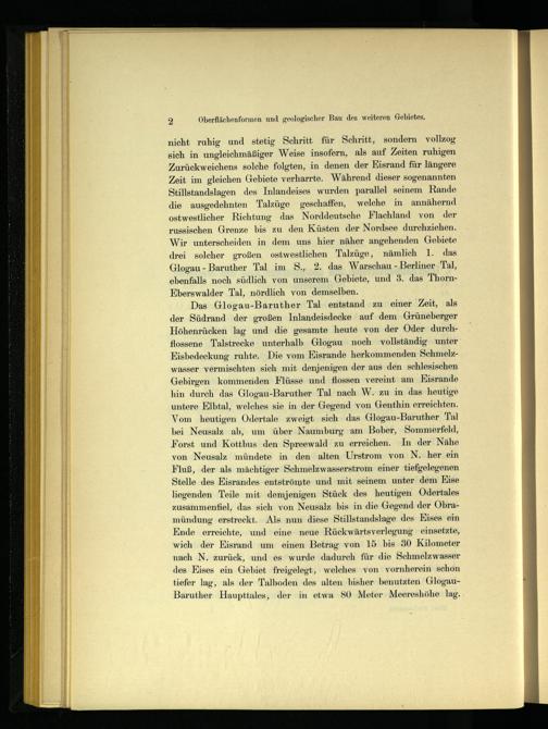 ostwestlicher Richtung das Norddeutsche Flachland von der russischen Grenze bis zu den Küsten der Nordsee durchziehen. Wir unterscheiden in dem uns hier näher angehenden Gebiete drei solcher großen ostwestlichen Talzüge, nämlich 1. das Glogau - Baruther Tal im S., 2. das Warschau - Berliner Tal, ebenfalls noch südlich von unserem Gebiete, und 3. das ThornEberswalder Tal, nördlich von demselben.
