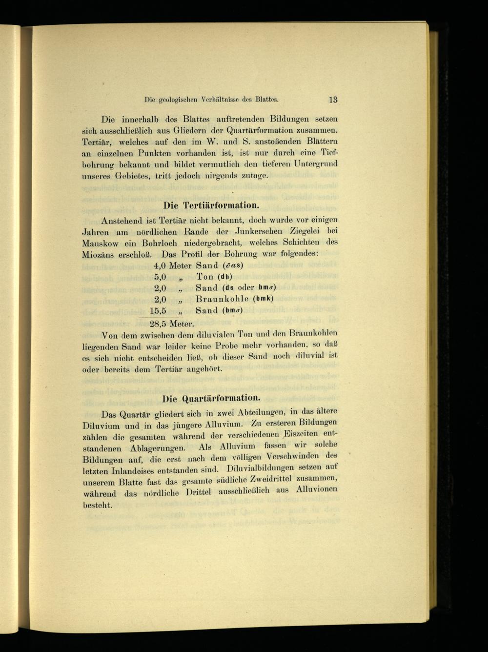 Das Quartär gliedert sich in zwei Abteilungen, in das ältere Diluvium und in das jüngere Alluvium. Zu ersteren Bildungen n KEiszeiten ent
