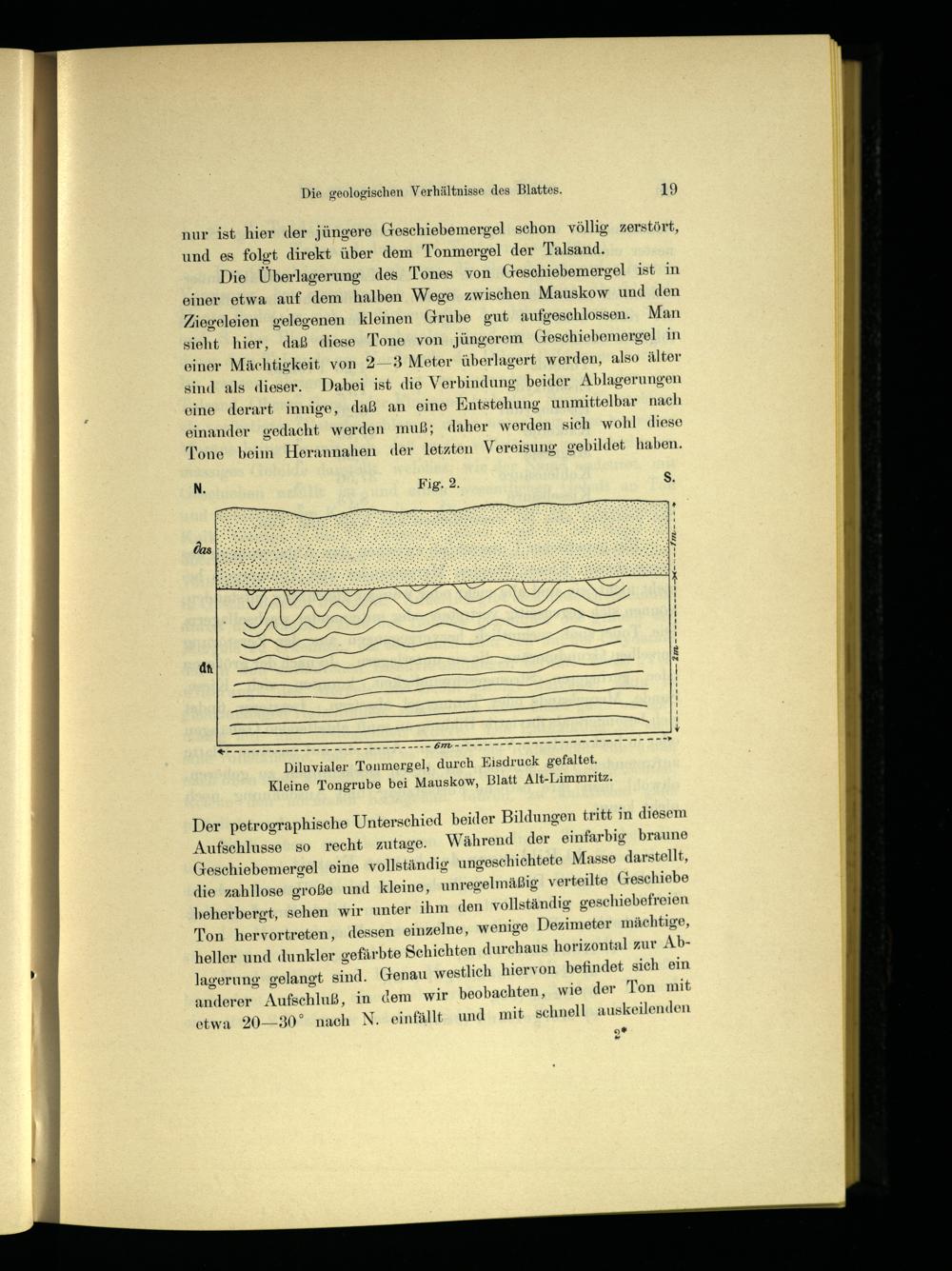 Diluvialer Tonmergel, durch Eisdruck gefaltet. Kleine Tongrube bei Mauskow, Blatt Alt-Limmritz.