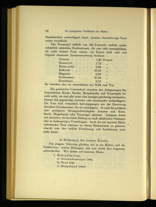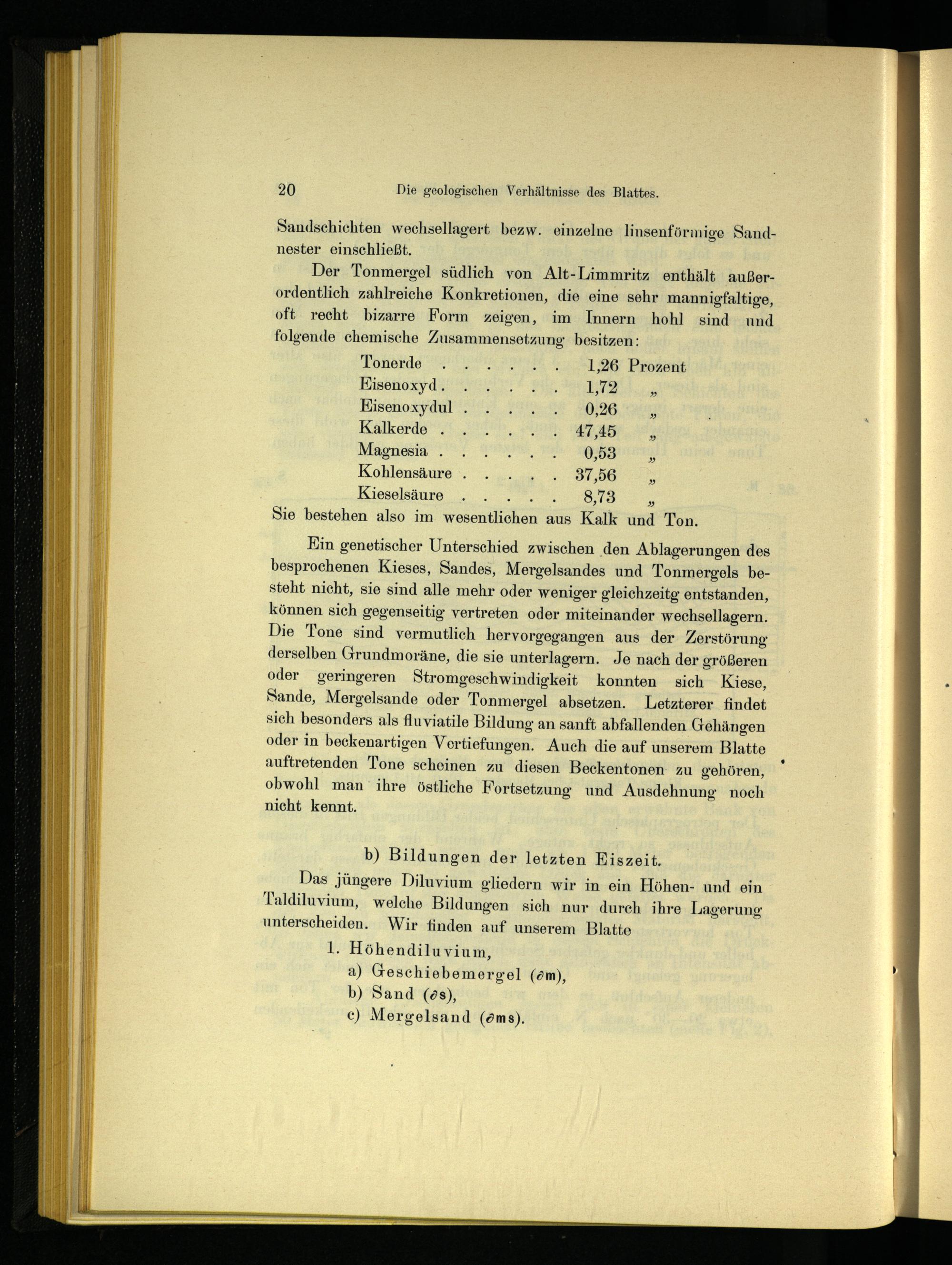 Der Tonmergel südlich von Alt-Limmritz enthält außerordentlich zahlreiche Konkretionen, die eine sehr mannigfaltige, oft recht bizarre Form zeigen, im Innern hohl sind und folgende chemische Zusammensetzung besitzen: