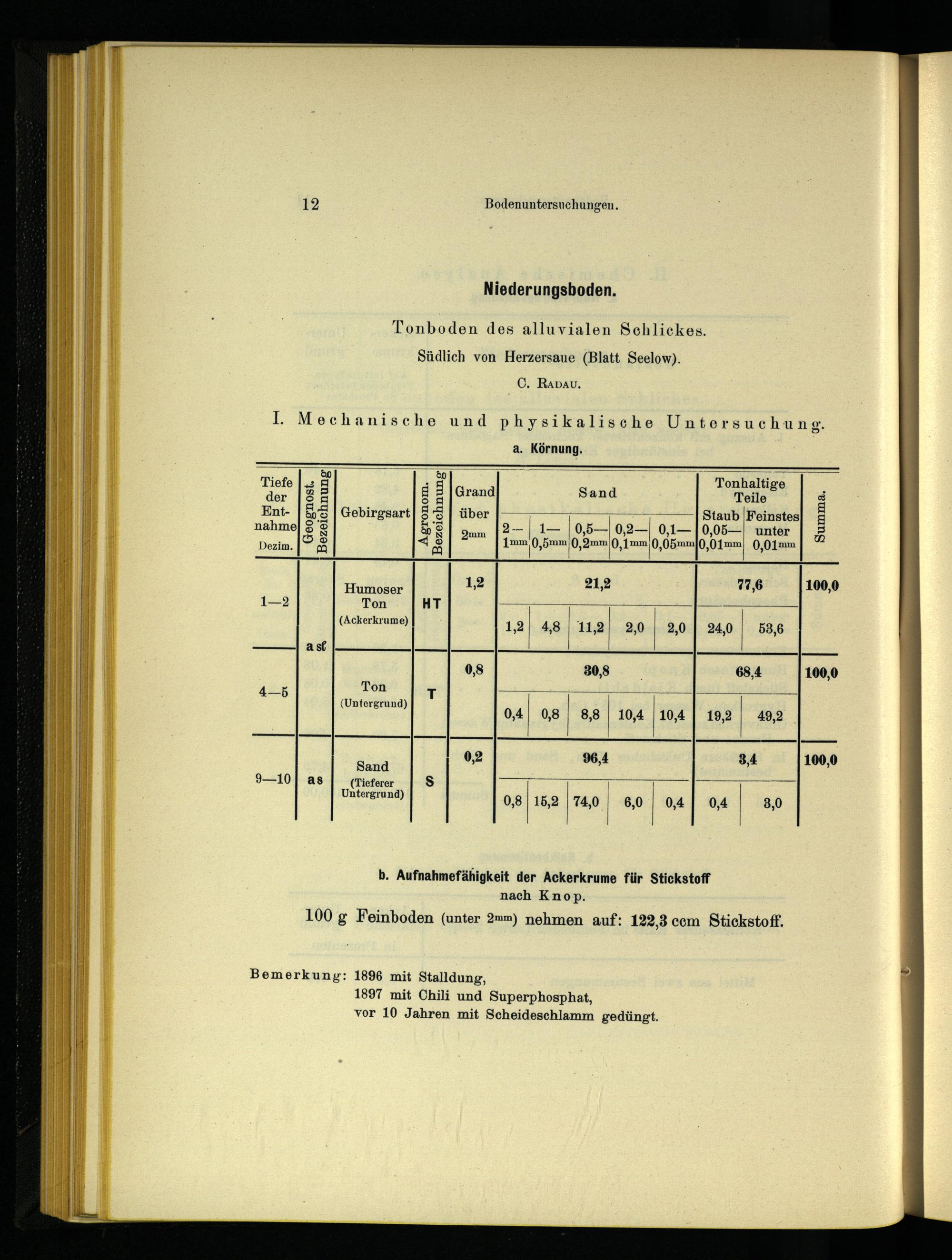 Bemerkung: 1896 mit Stalldung, 1897 mit Chili und Superphosphat, vor 10 Jahren mit Scheideschlamm gedüngt.