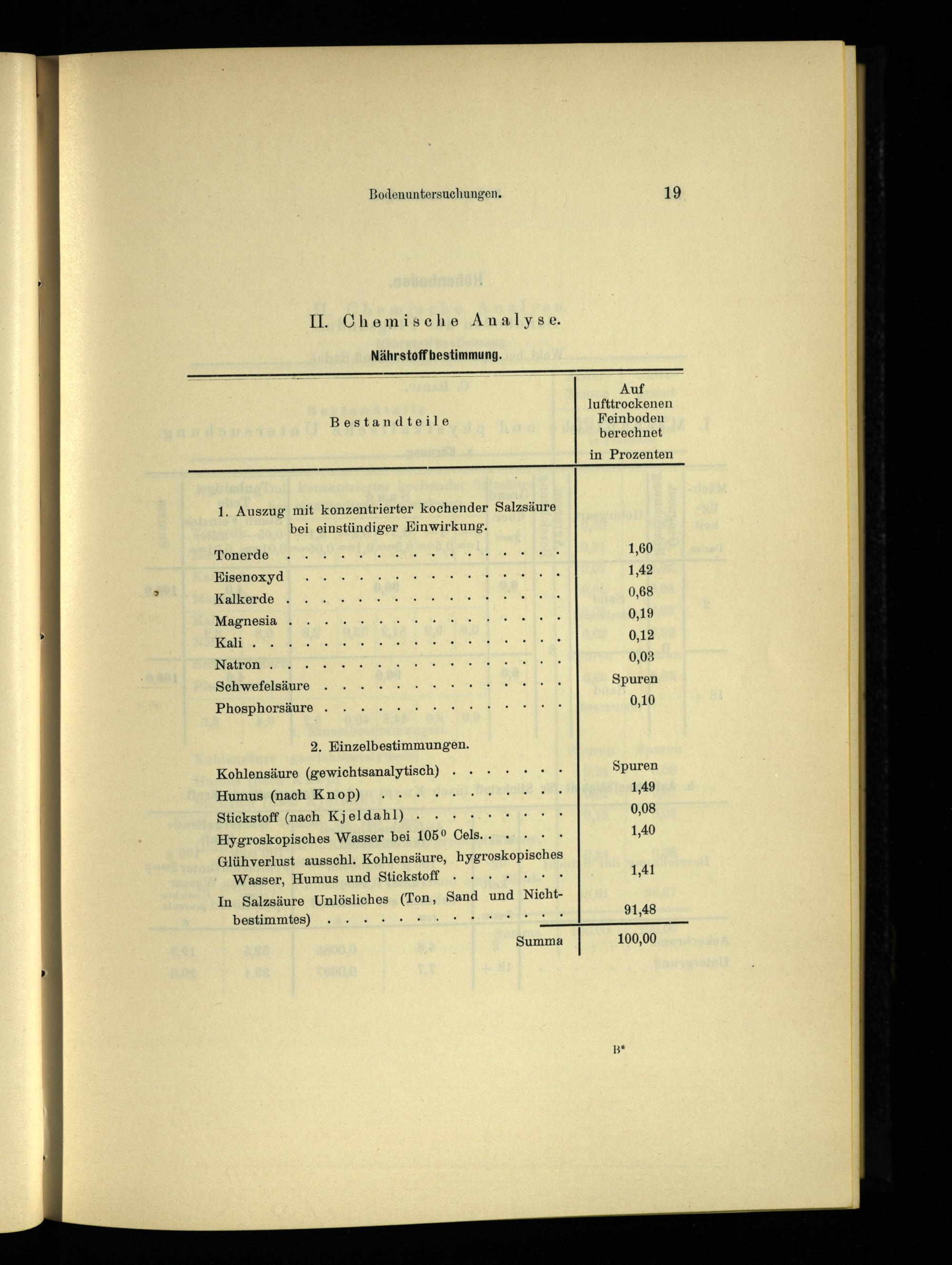 Glühverlust ausschl. Kohlensäure, hyeroekoP Sch Wasser, Humus und Stickstoff