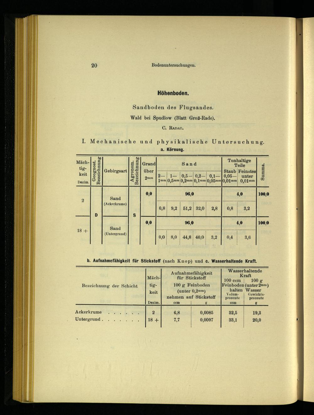 b. Aufnahmefähigkeit für Stickstoff(nach Knop) und c. Wasserhaltende Kraft.