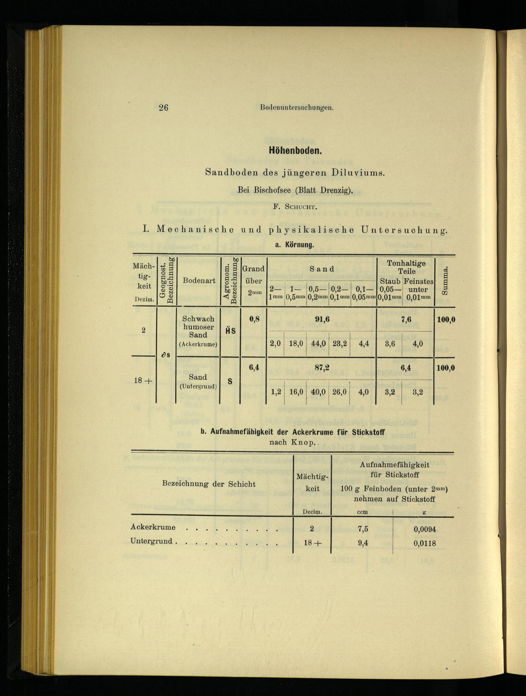 b. Aufnahmefähigkeit der Ackerkrume für Stickstoff nach Knop.