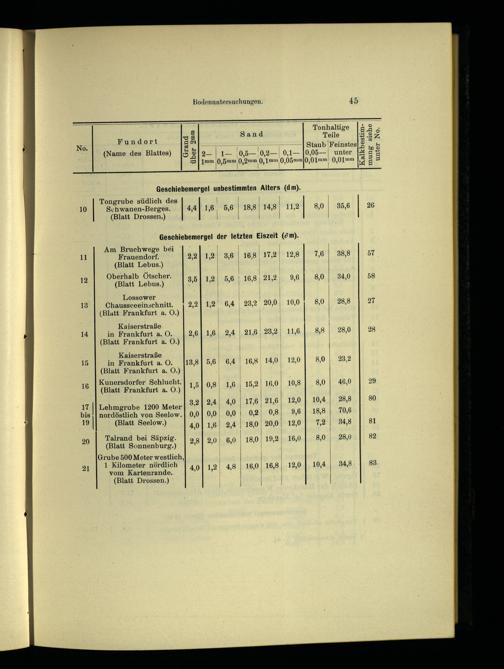 Tonhaltige Fundort Sand Teile ES De SOC Staub|Feinstes (Name des Blattes)| 1— 0,5—;0,2— 0,1—[0,05—| unter 0,5mm 0,2mn 0, Lamm 0,05 0,01mm/ 0,01mm