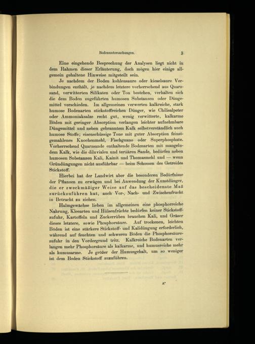 Je nachdem der Boden kohlensaure oder kieselsaure Verbindungen enthält, je nachdem letztere vorherrschend aus Quarzsand, verwitterten Silikaten oder Ton bestehen, verhalten sich die dem Boden zugeführten humosen Substanzen oder Dünge