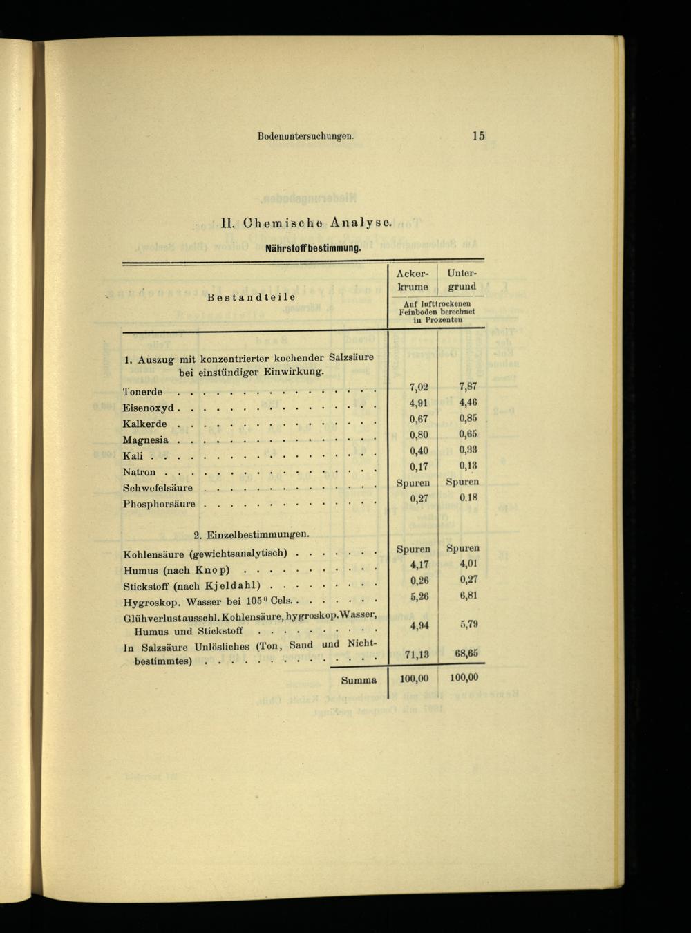 Glühverlust ausschl. Kohlensäure, hygroskop. Wasser, Humus und Stickstoff.