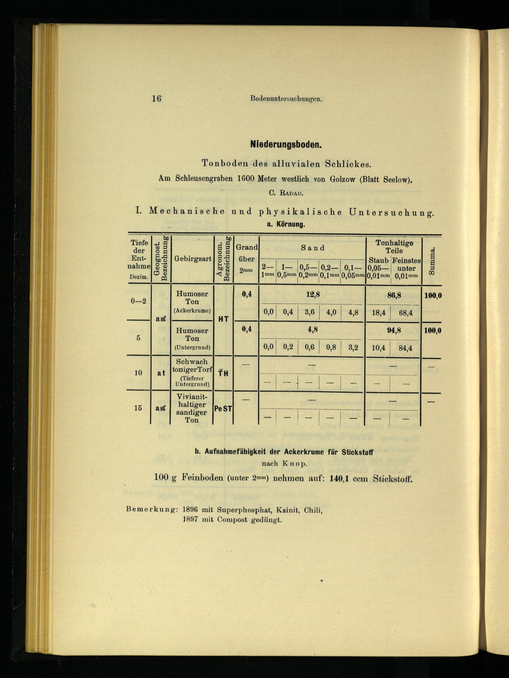 Bemerkung: 1896 mit Superphosphat, Kainit, Chili, 1897 mit Compost gedüngt.