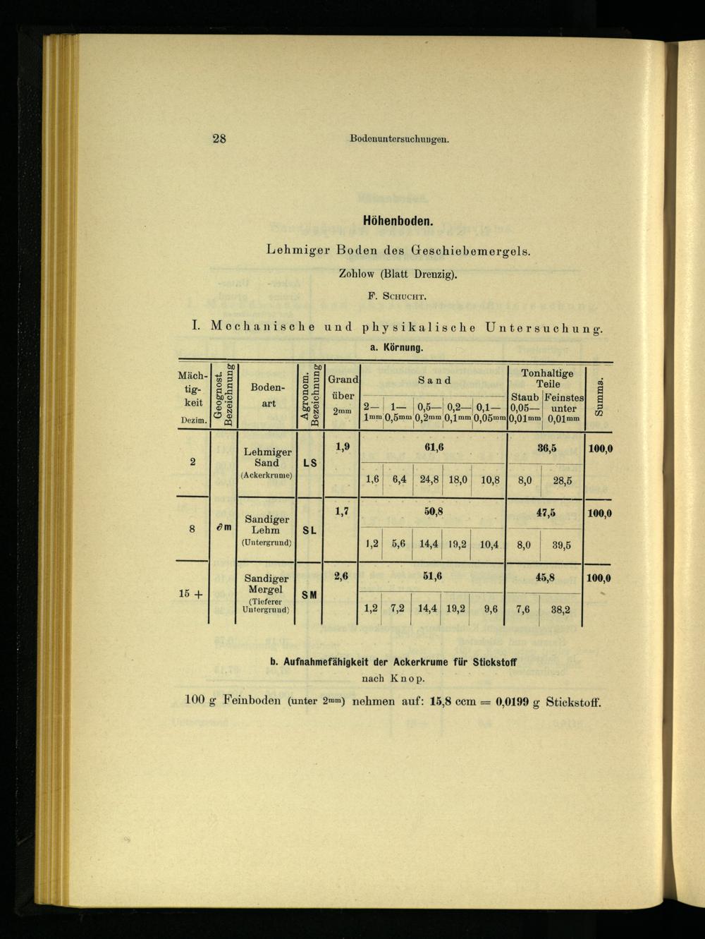 b. Aufnahmefähigkeit der Ackerkrume für Stickstoff nach Knop.