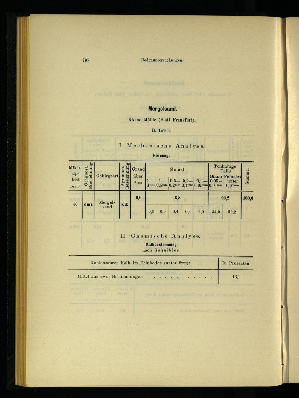 Körnung. SO Da EEE= 1 SE nn m De RE Ze;. Tonhaltige Mäch-% E 8 5 Grand Sand Teile” Ss Ye“ Es| Gebirgsart| ES] über|———————| Staub Feinstes|&£ keit| 33 58| 9mm|2— 1— 10,5— 0,2— 0,1—|0,05—/ unter| 3 Dezim. OS 7 dm Q,ömm 0, mm 0, 1m 0,05mm 0,01 mm 0,01mm 0,0 6,8 93,2 100,0