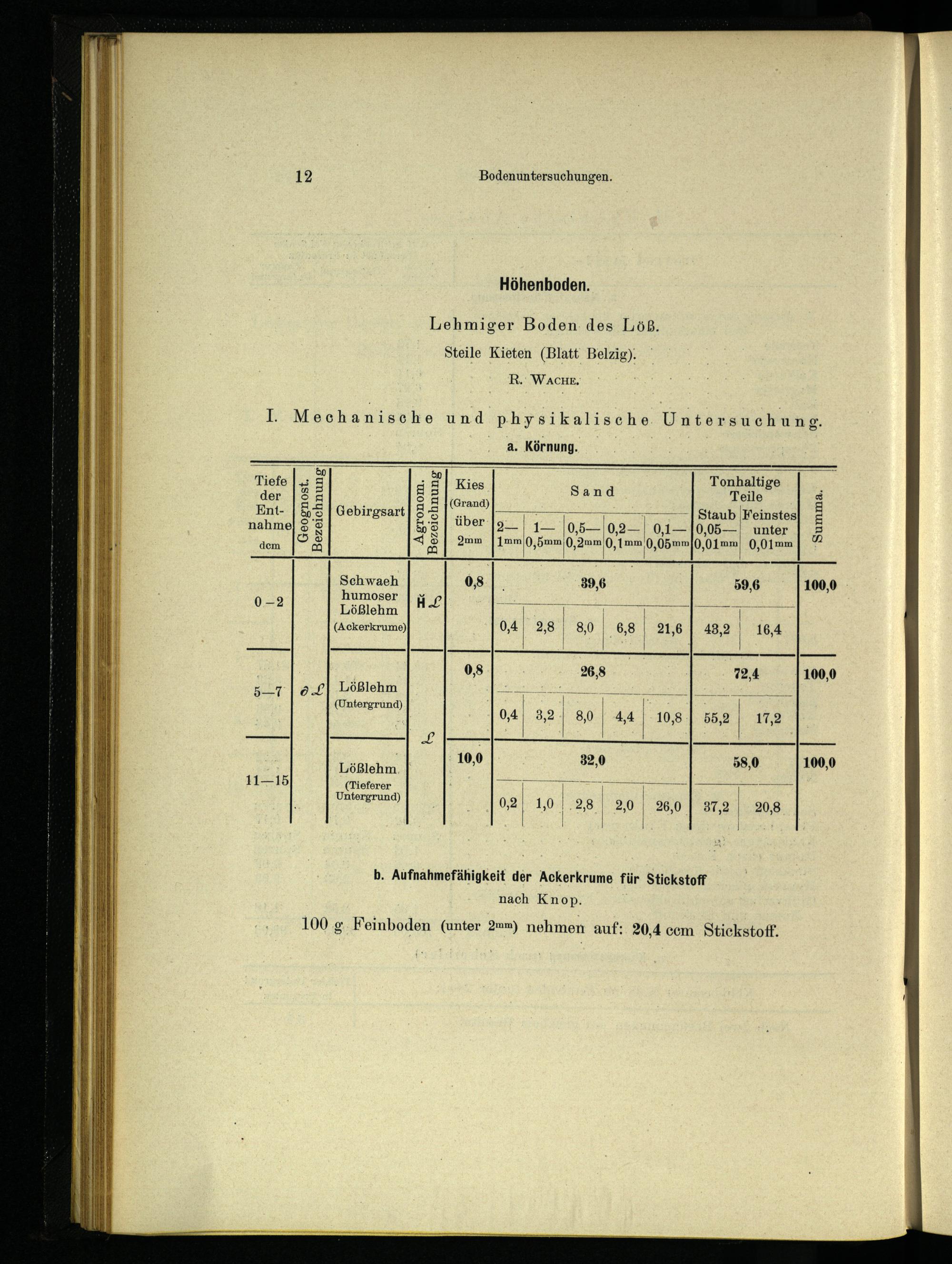 100 g. Feinboden(unter 2mm) nehmen auf: 20,4 ccm Stickstoff.