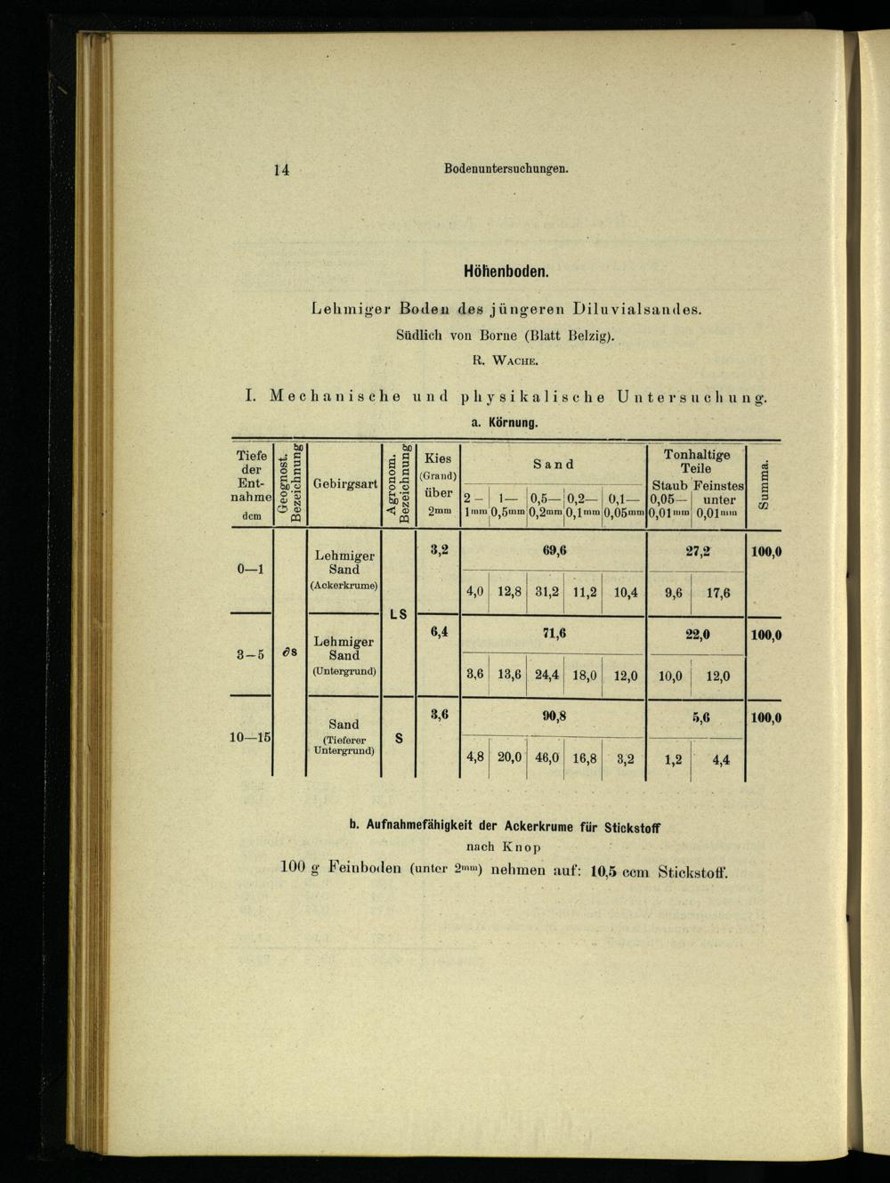 b. Aufnahmefähigkeit der Ackerkrume für Stickstoff