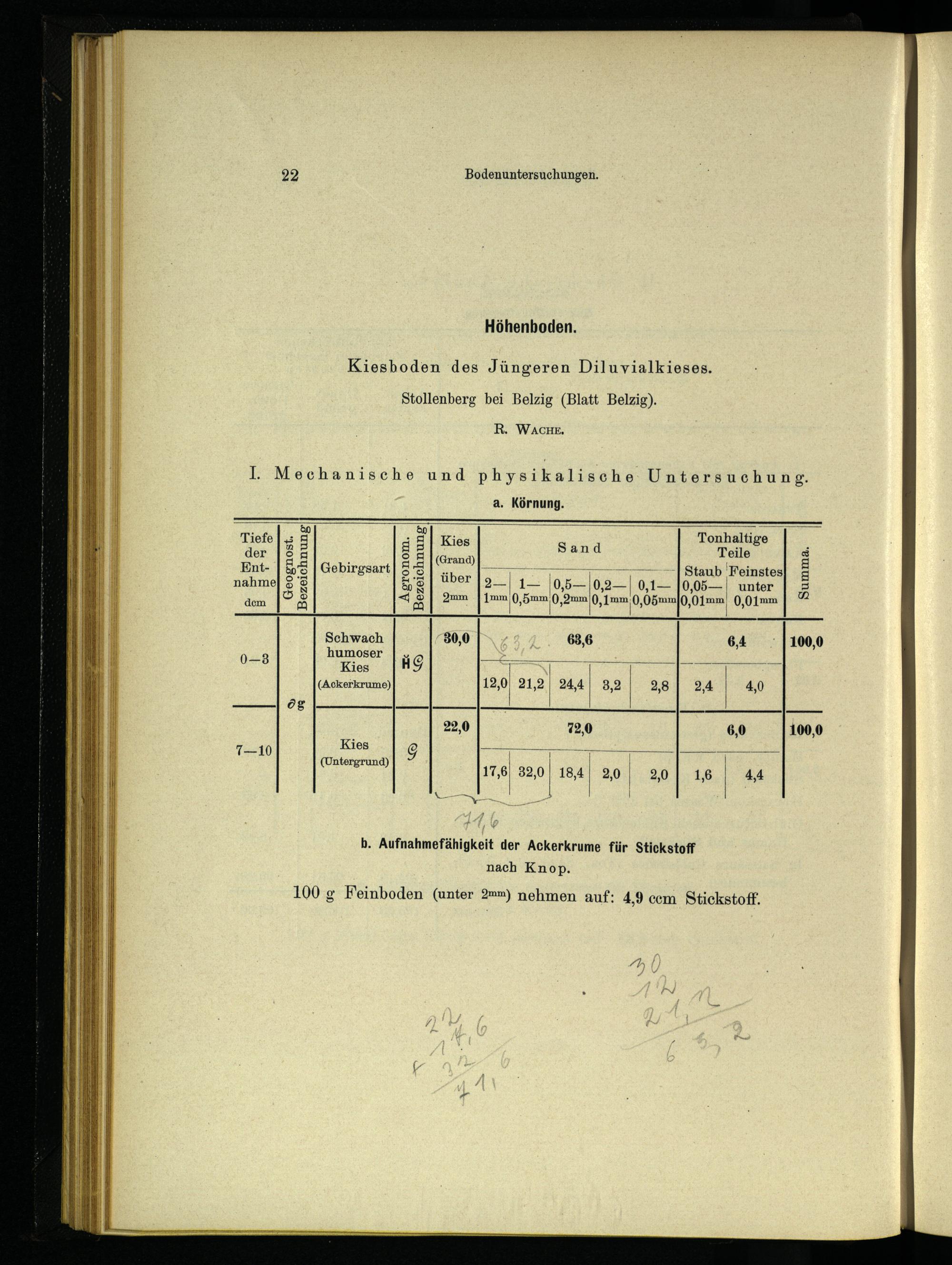 b. Aufnahmefähigkeit der Ackerkrume für Stickstoff nach Knop.