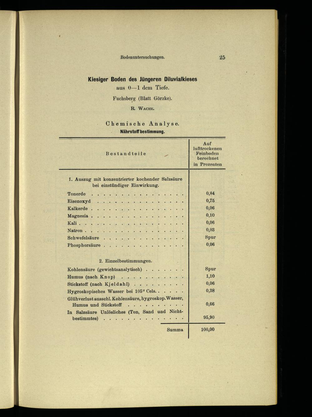 Kohlensäure(gewichtsanalytisch). Humus(nach. Knop):.. Stickstoff(nach Kjeldahl)