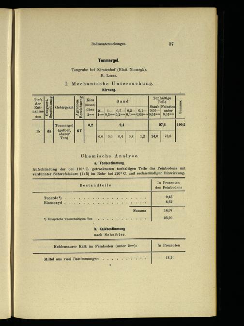 *) Entspräche wasserhaltigem Ton 23,90 b. Kalkbestimmung