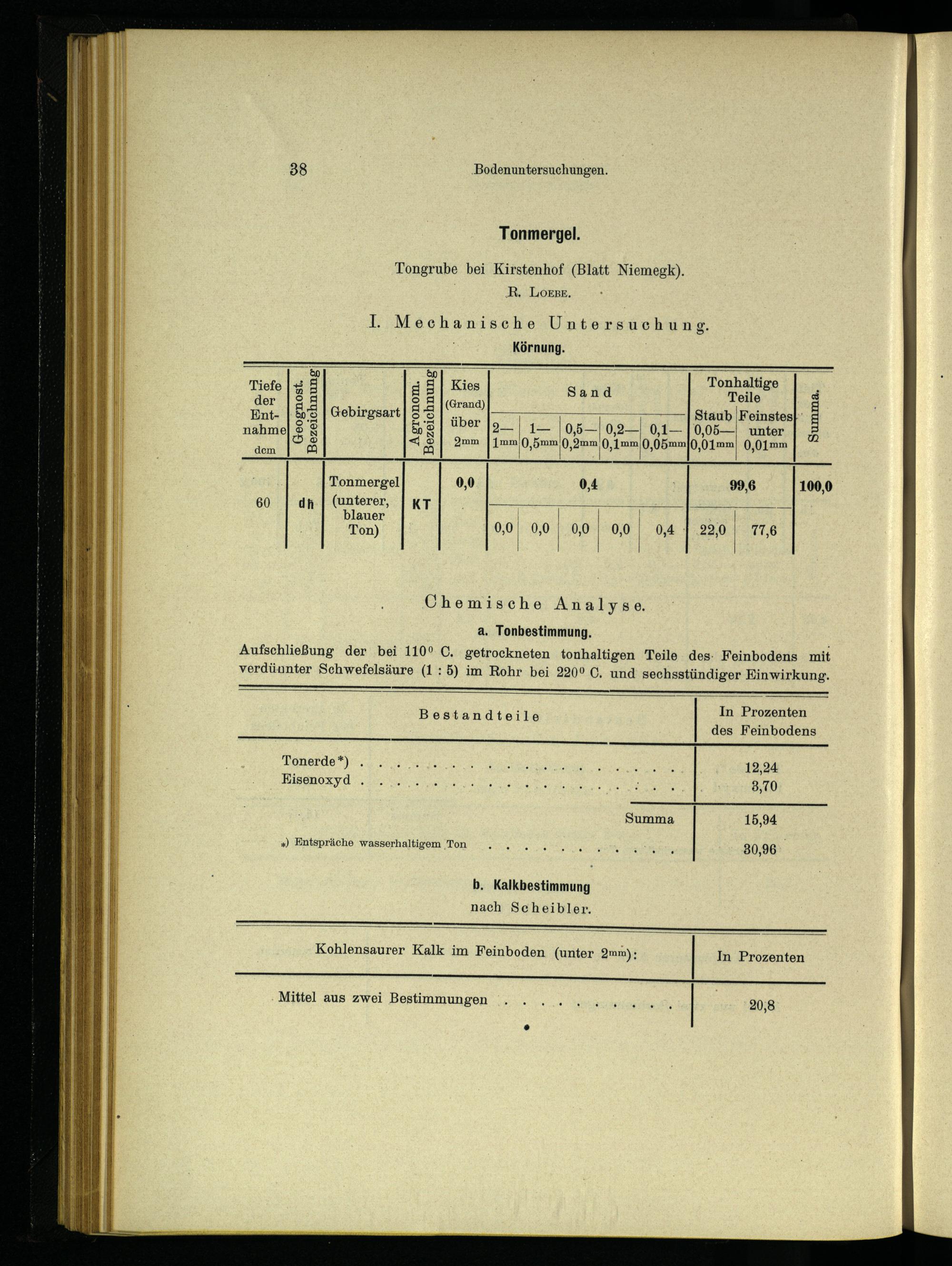 15,94 +) Entspräche wasserhaltigem Ton 30,96 b. Kalkbestimmung