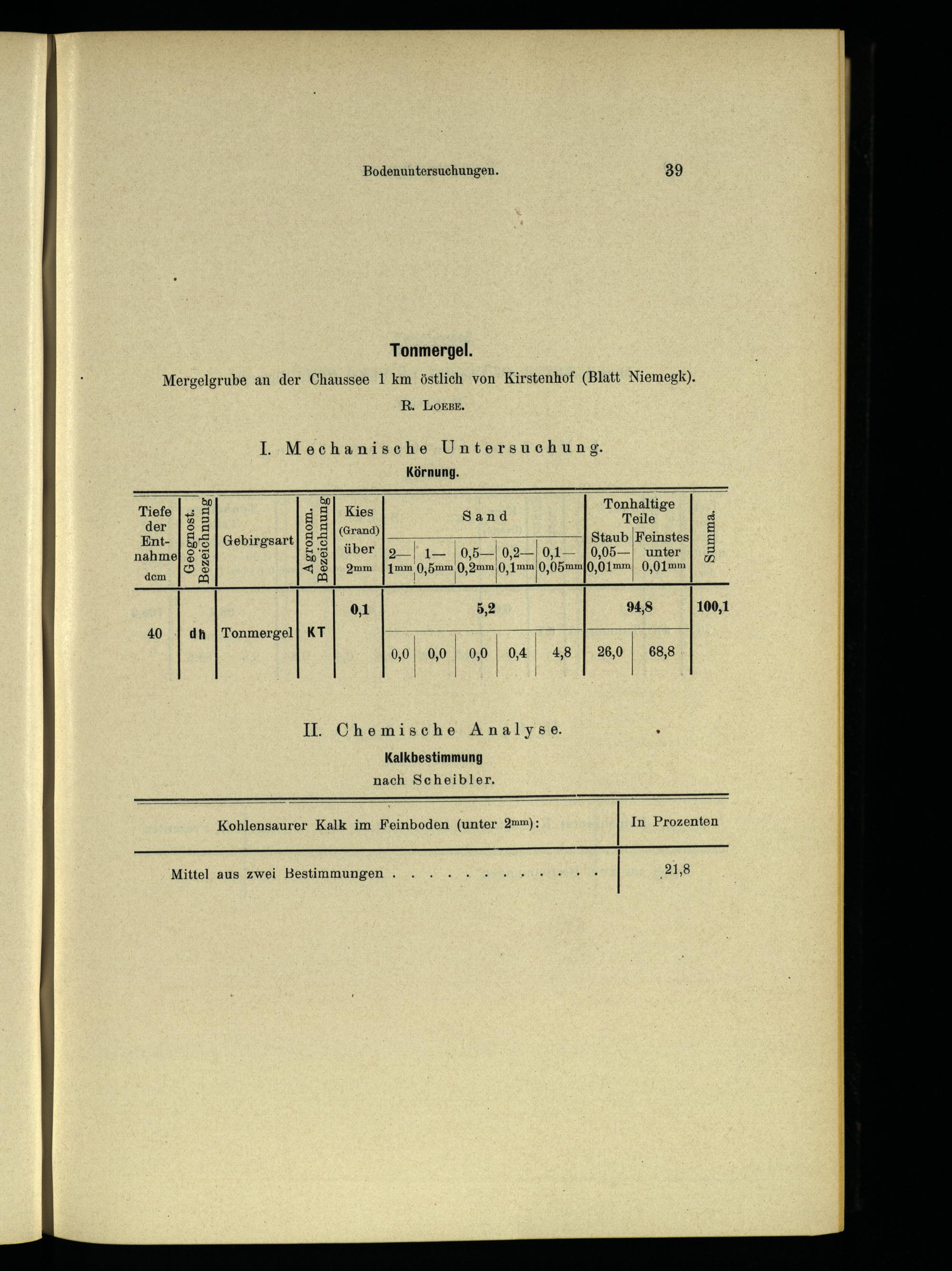 Tonmergel. Mergelgrube an der Chaussee 1 km östlich von Kirstenhof(Blatt Niemegk). R. LOEBE.