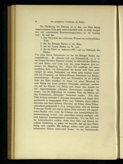 Die Gliederung des Fläming ist.in dem von Blatt Belzig eingenommenen Teile ganz außerordentlich reich, da nicht weniger wie vier verschiedene Entwässerungssysteme an ihr beteiligt sind. Es sind das: