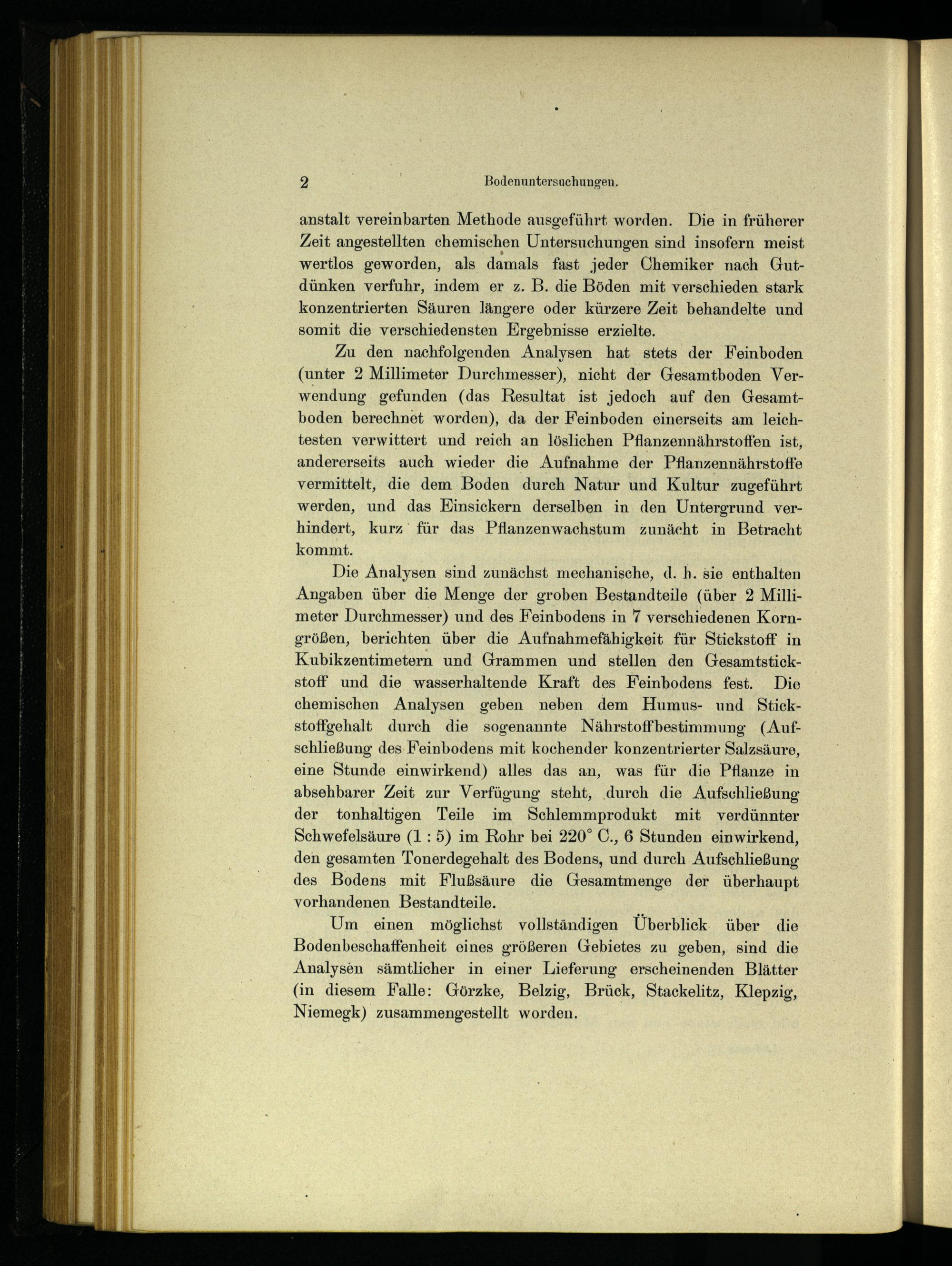 Um einen möglichst vollständigen Überblick über die Bodenbeschaffenheit eines größeren Gebietes zu geben, sind die Analysen sämtlicher in einer Lieferung erscheinenden Blätter (in diesem Falle: Görzke , Belzig , Brück, Stackelitz , Klepzig, Niemegk ) zusammengestellt worden.