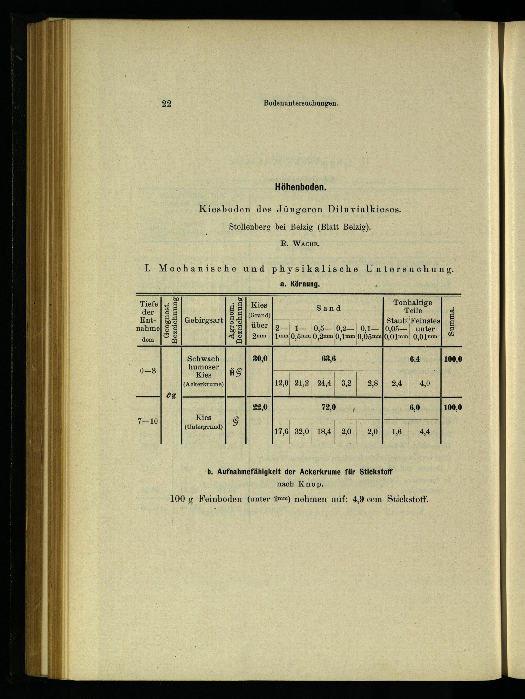 b. Aufnahmefähigkeit der Ackerkrume für Stickstoff nach Knop.