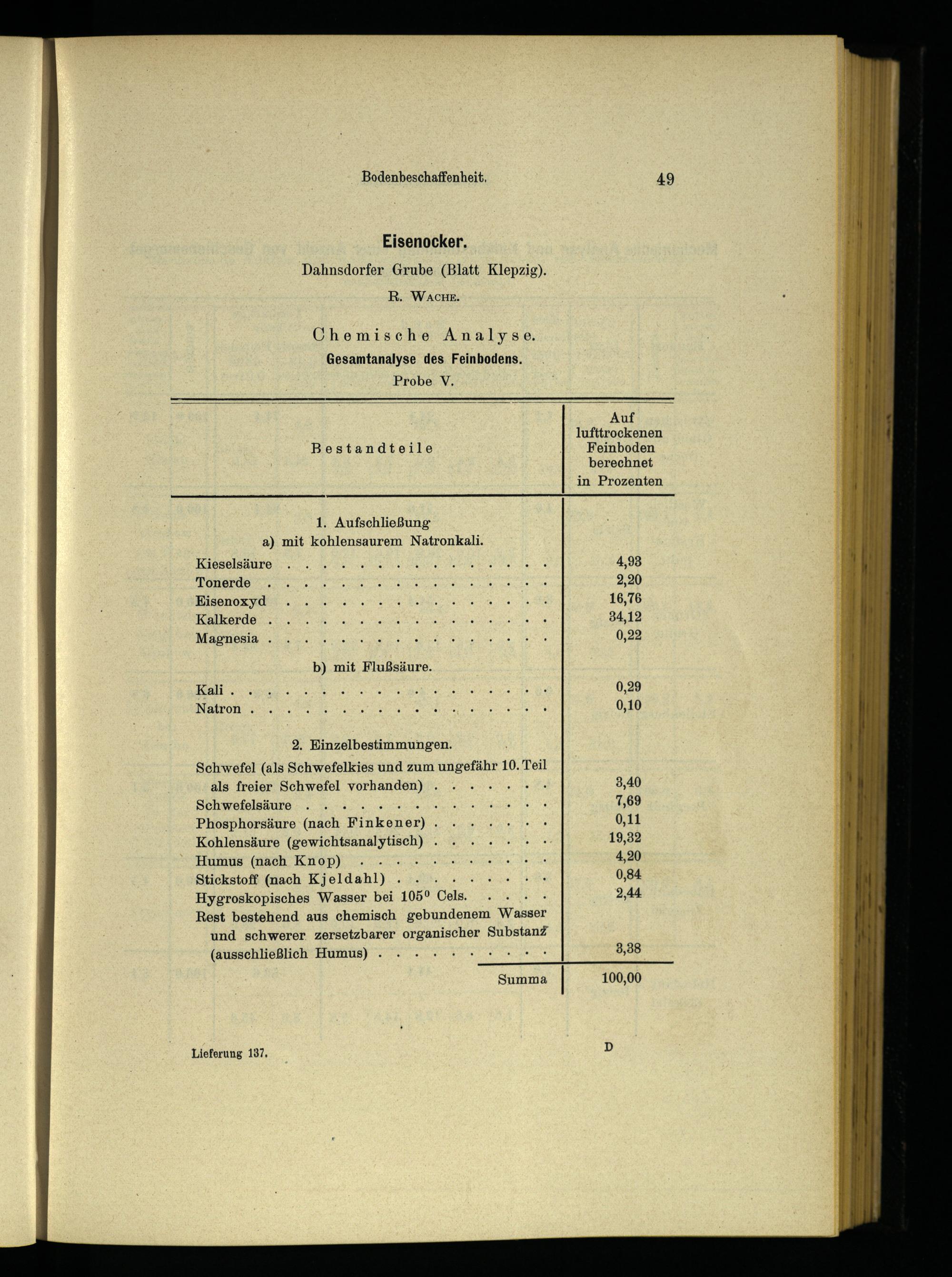Gesamtanalyse des Feinbodens. Probe V,