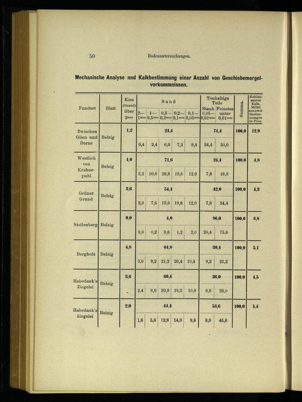 Mechanische Analyse nnd Kalkbestimmung einer Anzahl von Geschiebemergelvorkommnissen.
