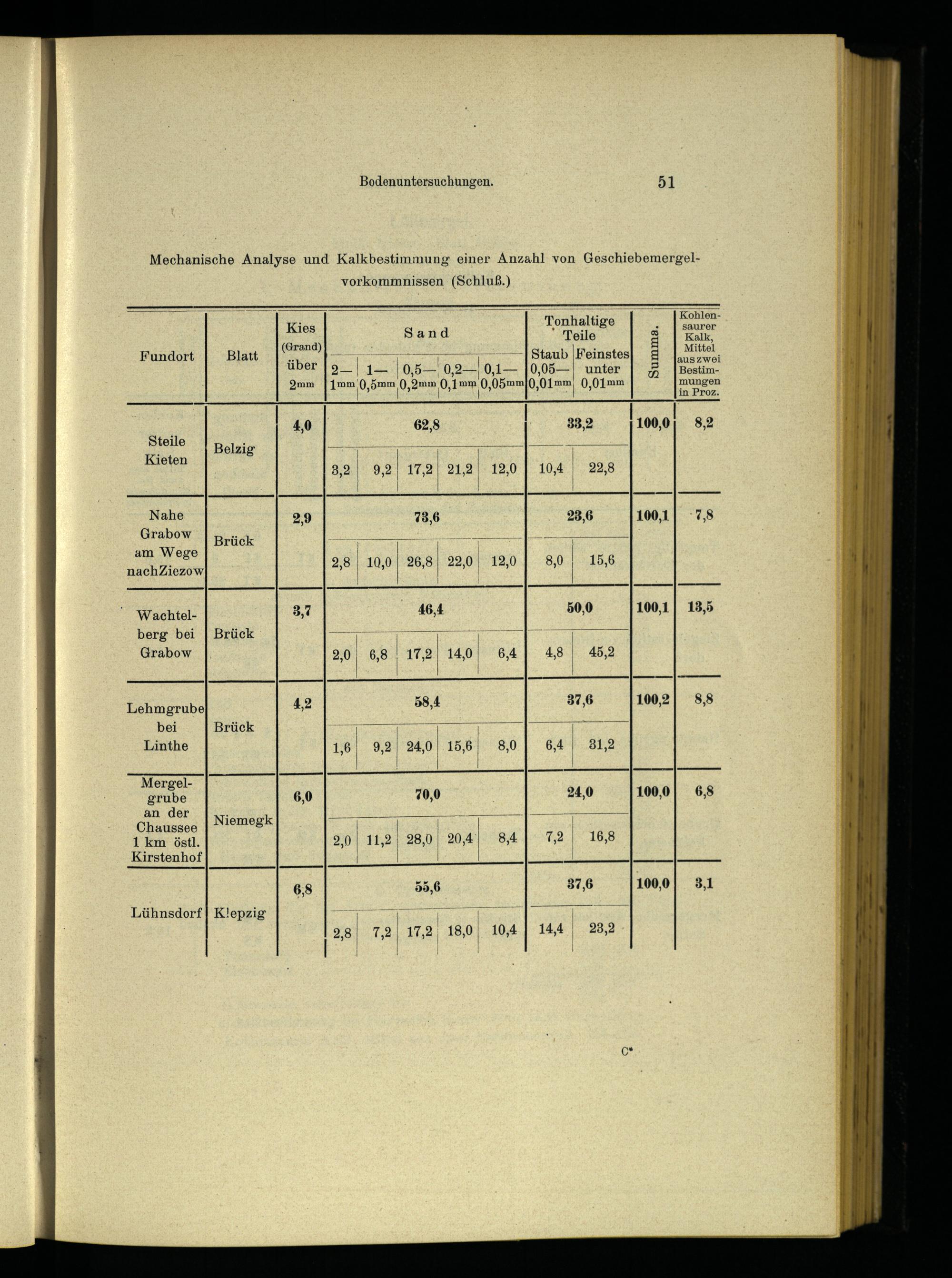 Mechanische Analyse und Kalkbestimmung einer Anzahl von Geschiebemergel