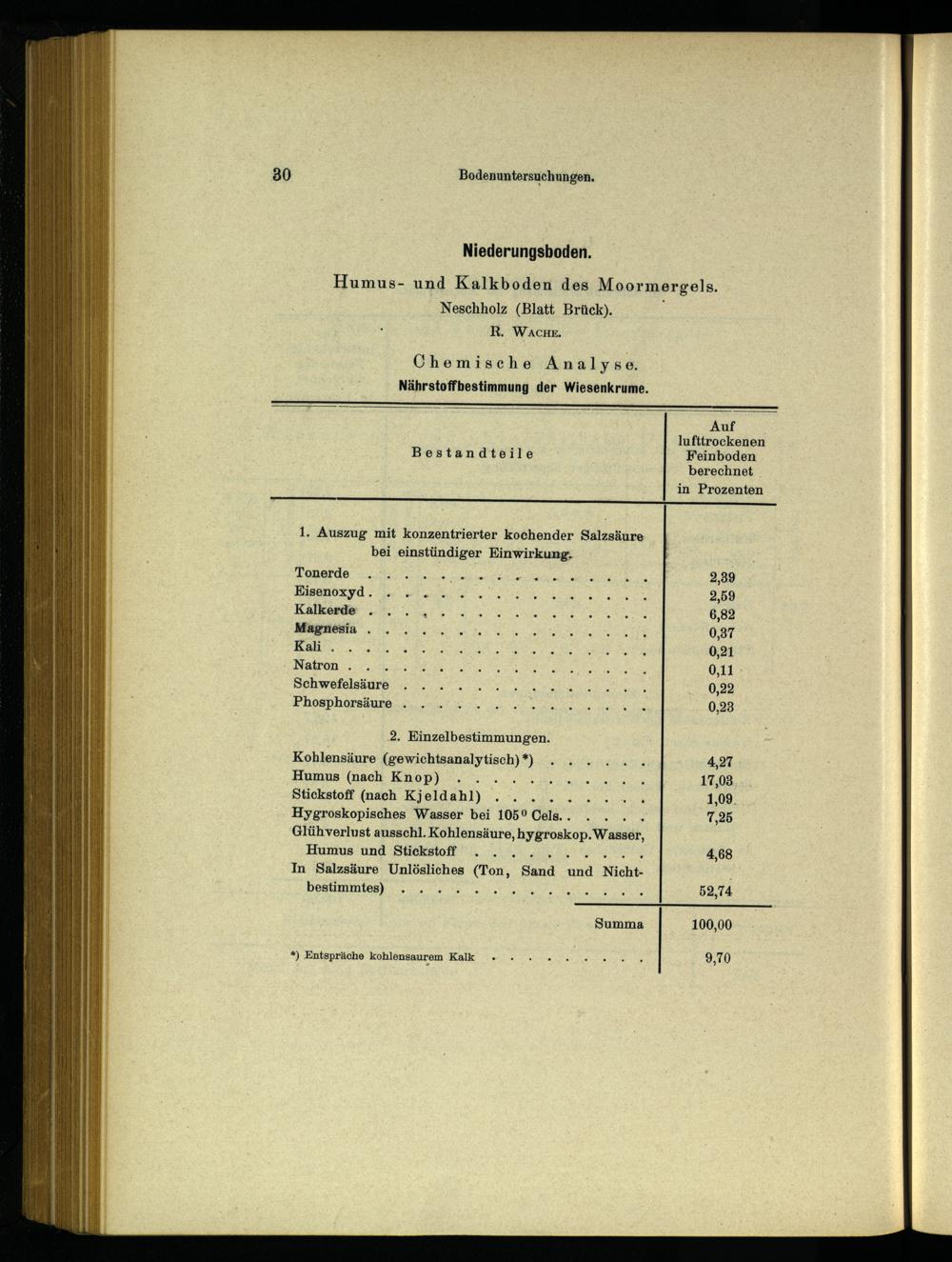 Humus- und Kalkboden des Moormergels. Neschholz(Blatt Brück).; R. WacHe,