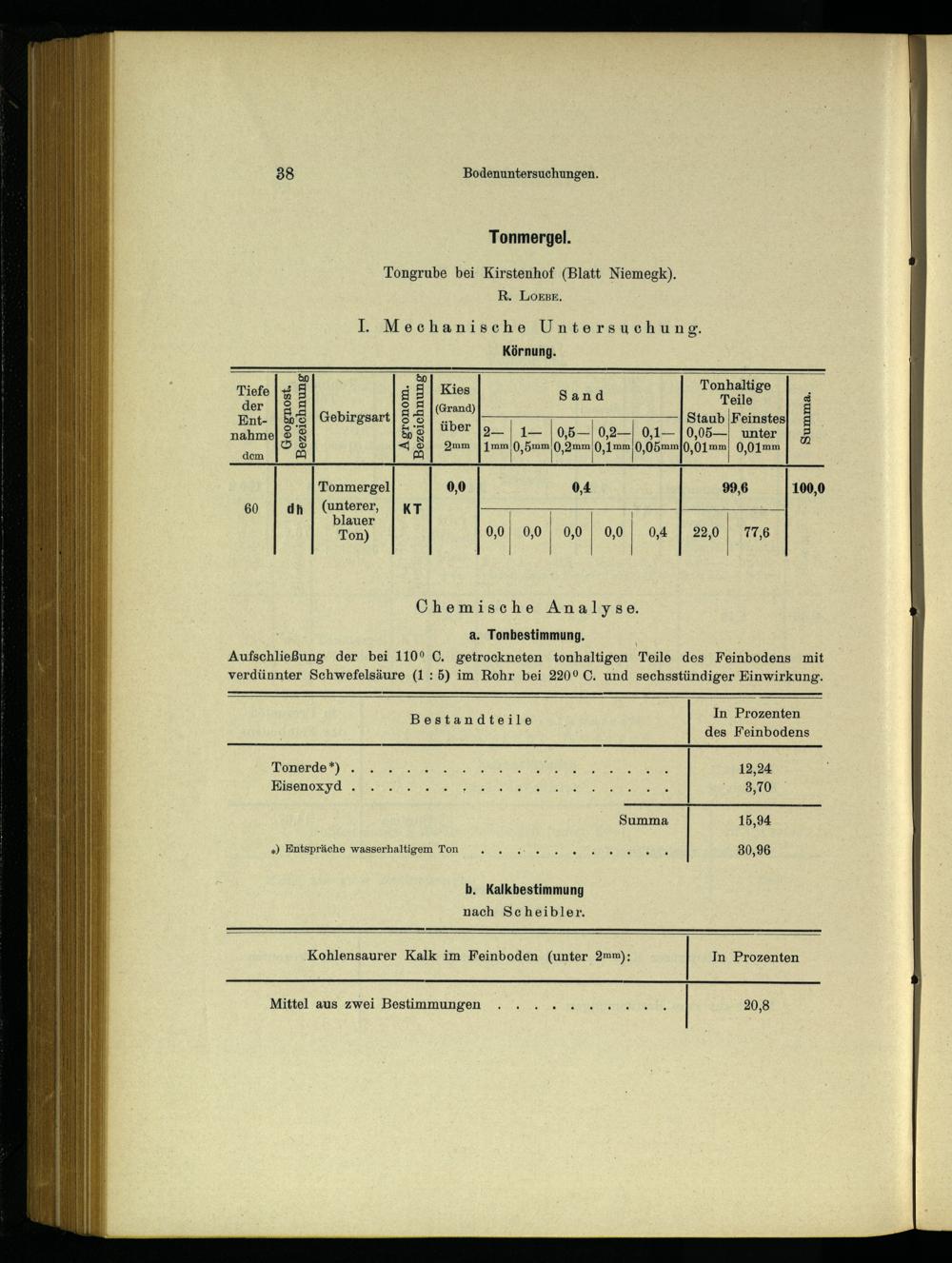 Tonerde). 1. 0. 00 RN 12,24 Kisenoxzyd 2... le N 3,70