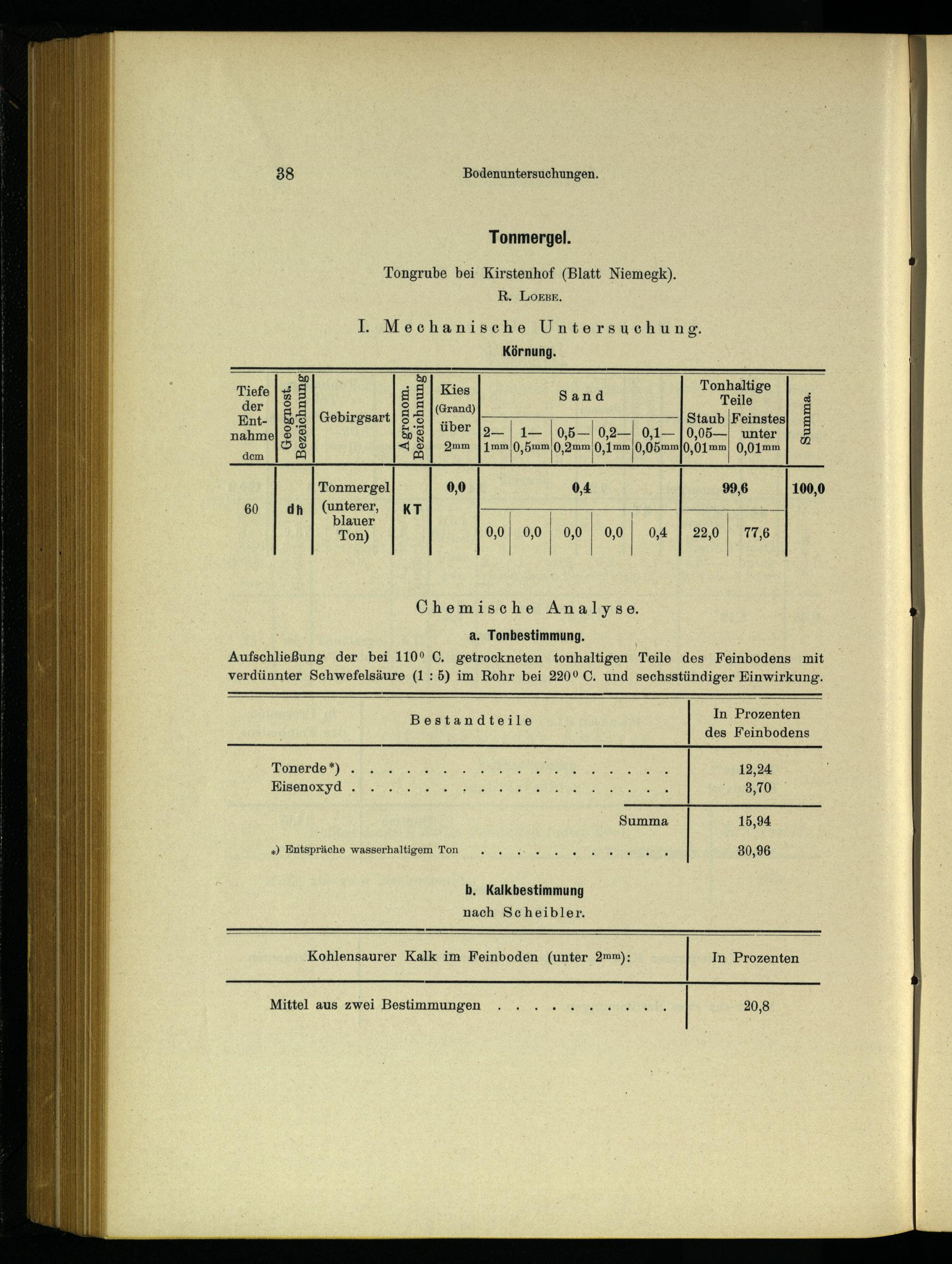 Aufschließung der bei 110° C, getrockneten tonhaltigen Teile des Feinbodens mit verdünnter Schwefelsäure(1: 5) im Rohr bei 220° C. und sechsstündiger Einwirkung.