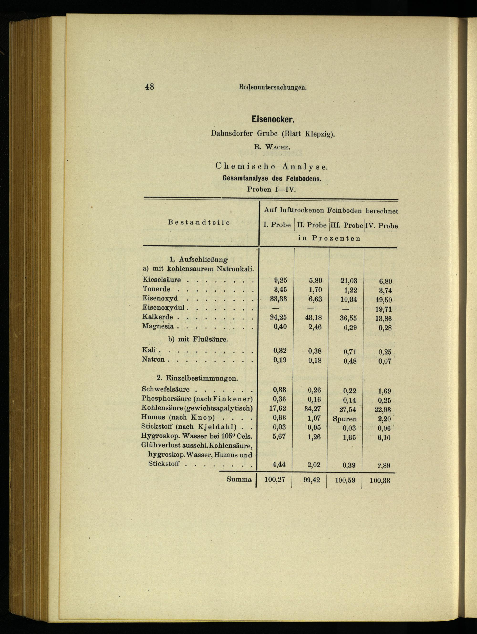 Gesamtanalyse des Feinbodens. Proben 1—IV.