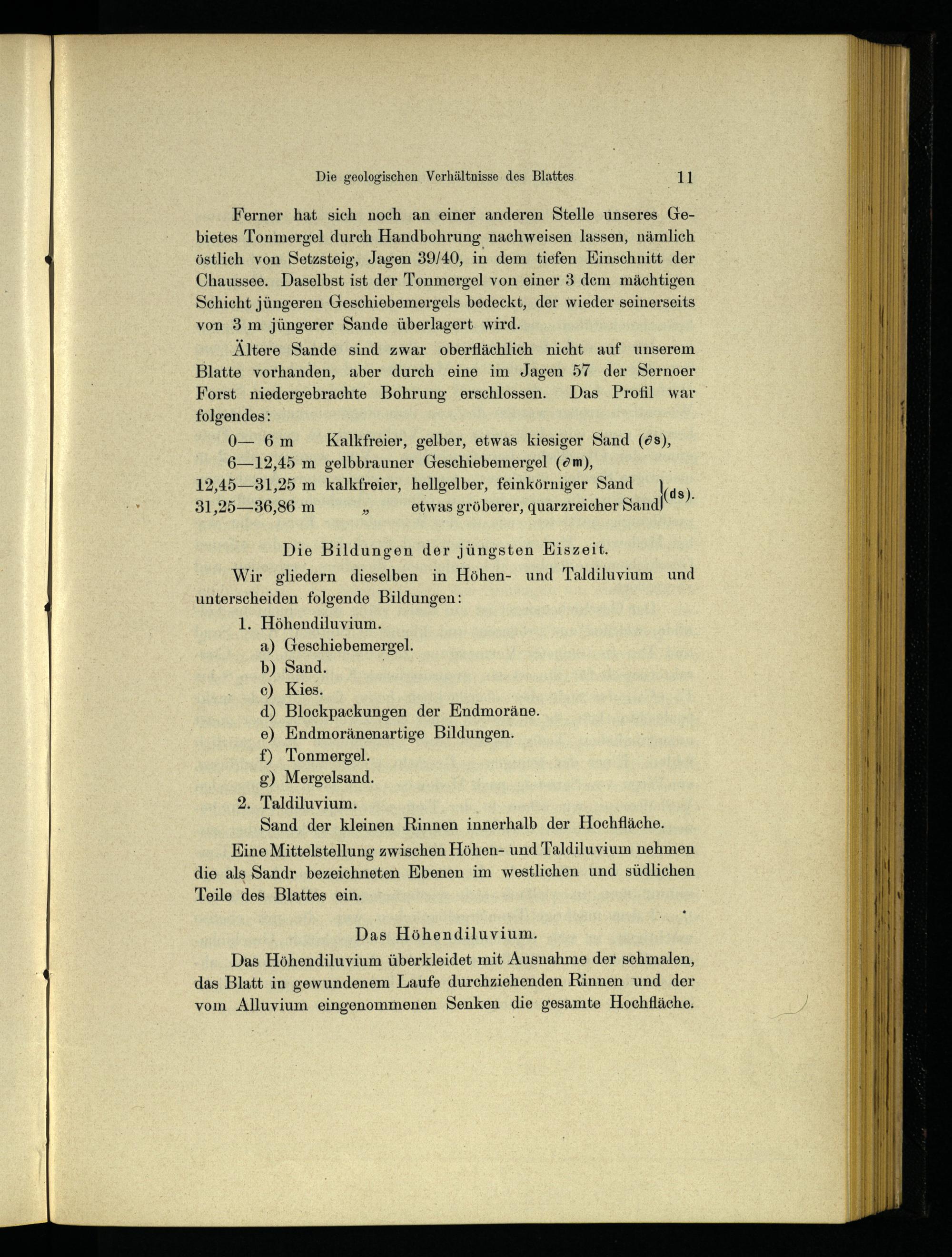 Das Höhendiluvium. Das Höhendiluvium überkleidet mit Ausnahme der schmalen, das Blatt in gewundenem Laufe durchziehenden Rinnen und der vom Alluvium eingenommenen Senken die gesamte Hochfläche.